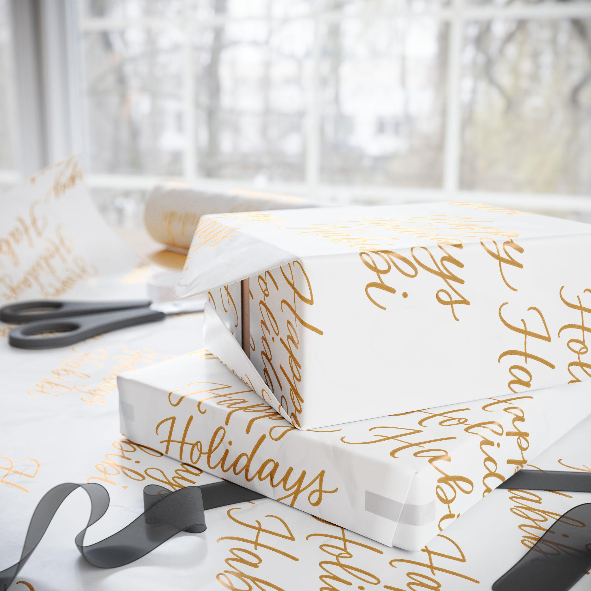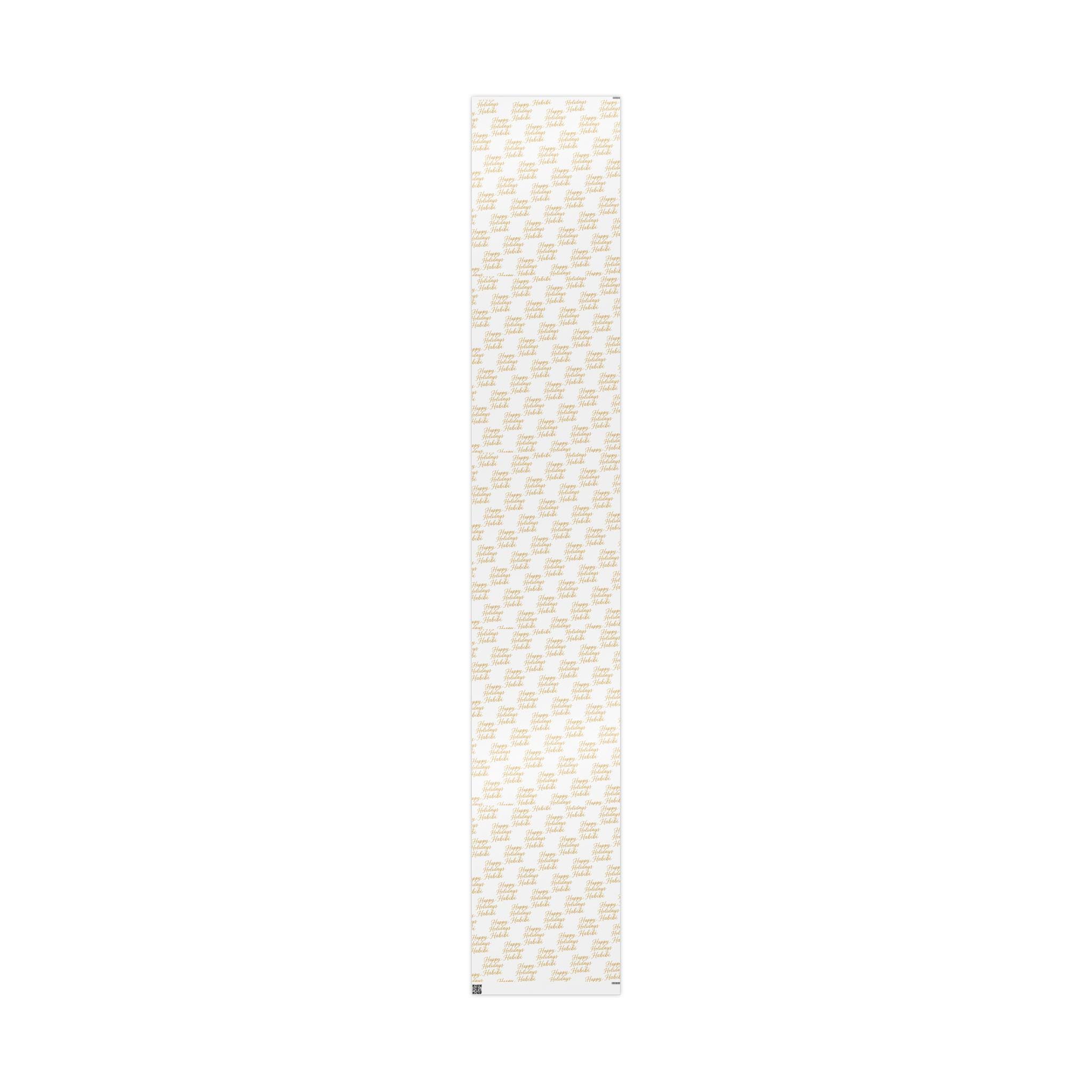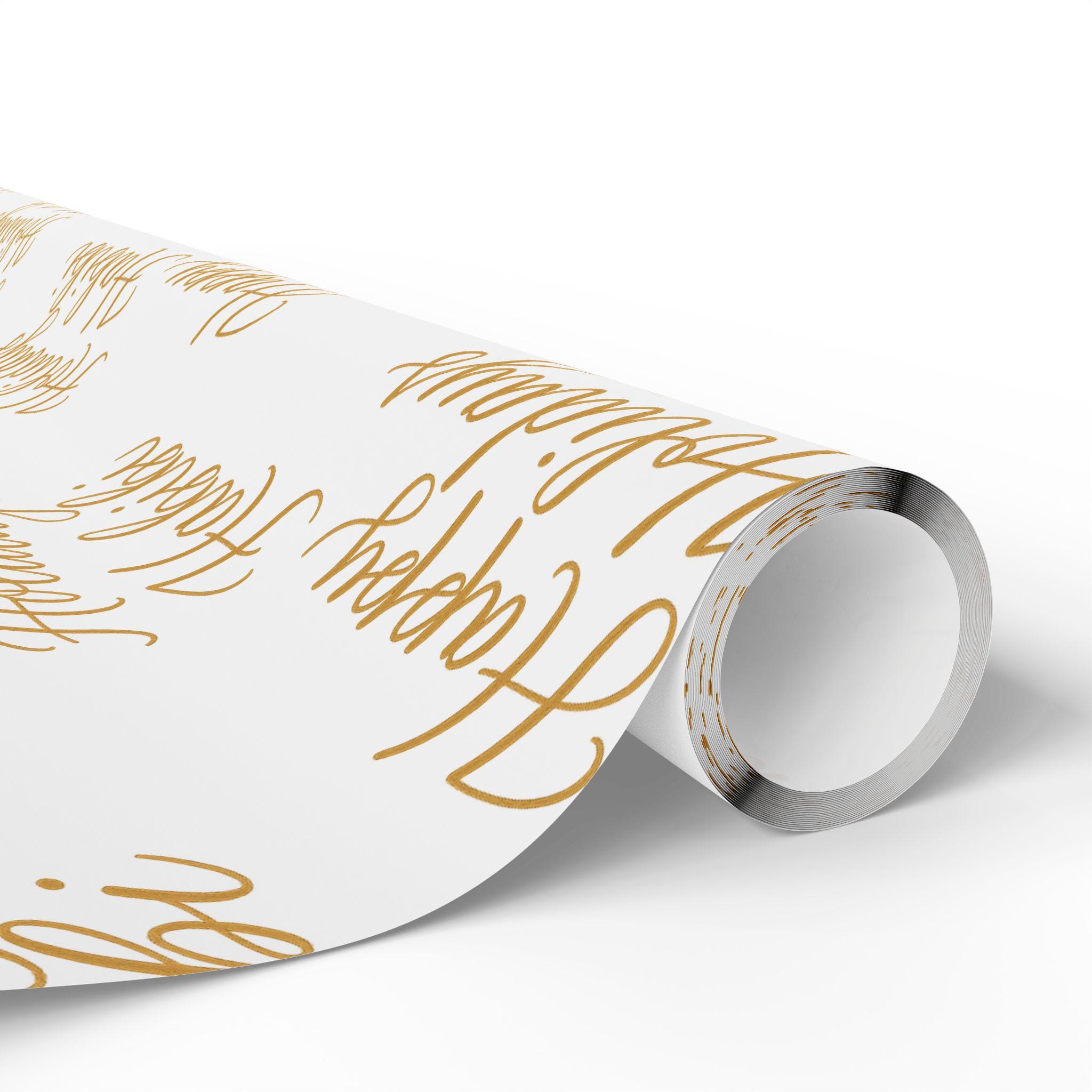 This elegant wrapping paper brings a warm, handwritten charm to your gifts. Soft golden script flows across a clean white background, giving packages a refined, celebratory feel. The thin, high-quality 90gsm fine art paper offers a tactile weight that folds crisply around boxes and bouquets, while your choice of glossy or matte finish lets you tailor the sheen to the moment—subtle and sophisticated for quiet gatherings, or a touch brighter for lively celebrations. Long-format sizes mean fewer seams when wrapping larger items, and the one-sided print keeps the reverse clean for neat edges. Small production markings appear on the sheet edges but won’t take away from the overall look once wrapped and tied.
