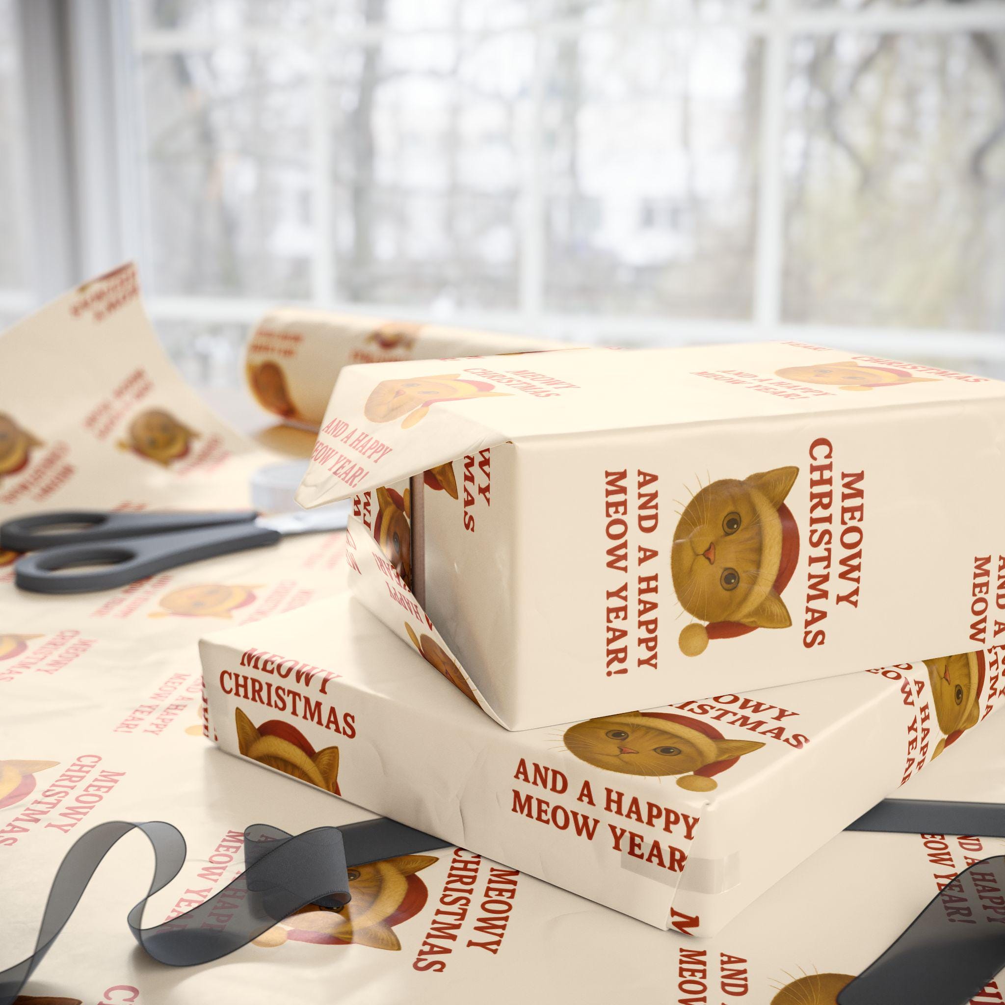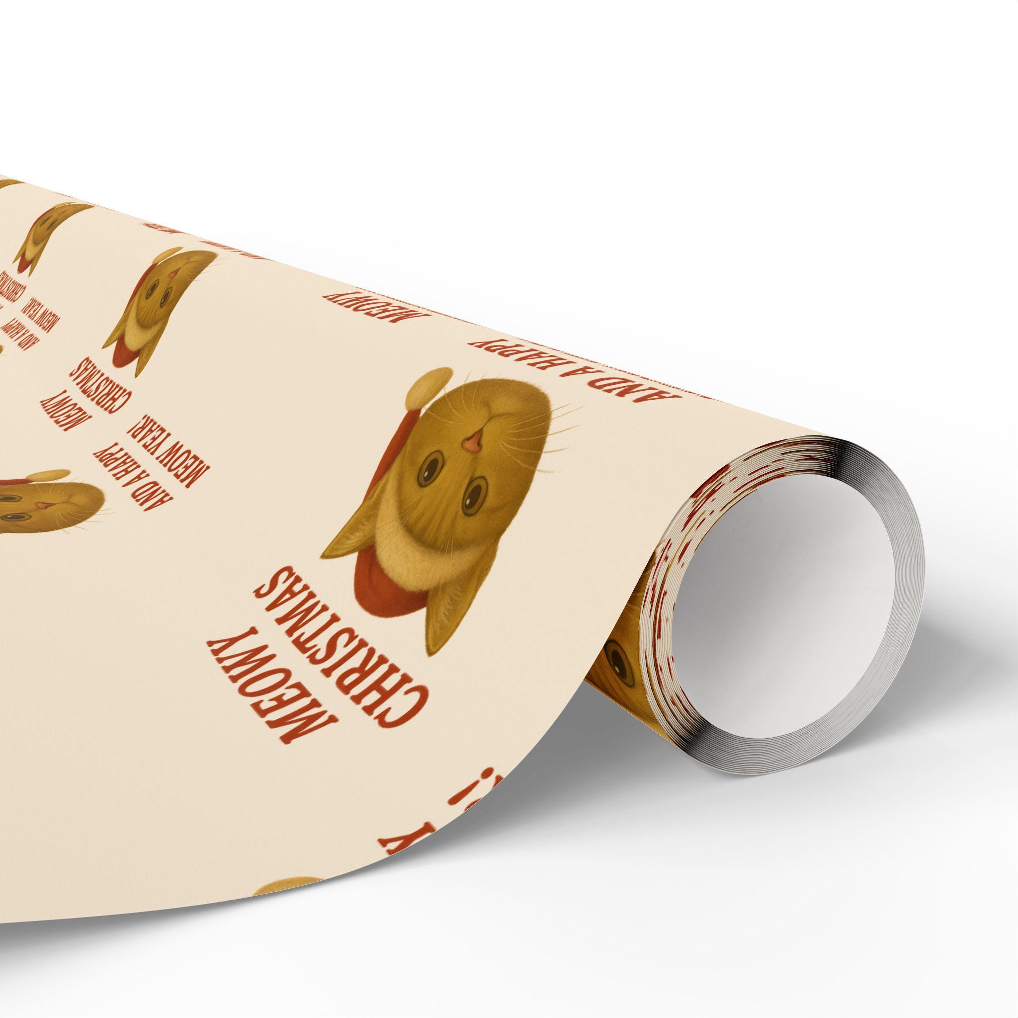This roll of illustrated wrapping paper brings a warm, whimsical feel to gift-giving. Printed on 90gsm fine art paper in high-definition, the single-sided design shows a repeating motif of a cozy, wide-eyed cat wearing a knit hat—soft neutrals and vintage-inspired tones give it a nostalgic, hand-drawn charm. Choose a glossy or smooth matte finish to suit your style, and pick from three lengths to wrap anything from small boxes to long, narrow parcels. The subtle white edge with a tiny barcode/QR strip remains at the top and bottom of each roll, keeping the pattern crisp across the wrap. Use it to add a comforting, playful touch to holiday packages, winter gatherings, or anytime you want a heartfelt, homey presentation.