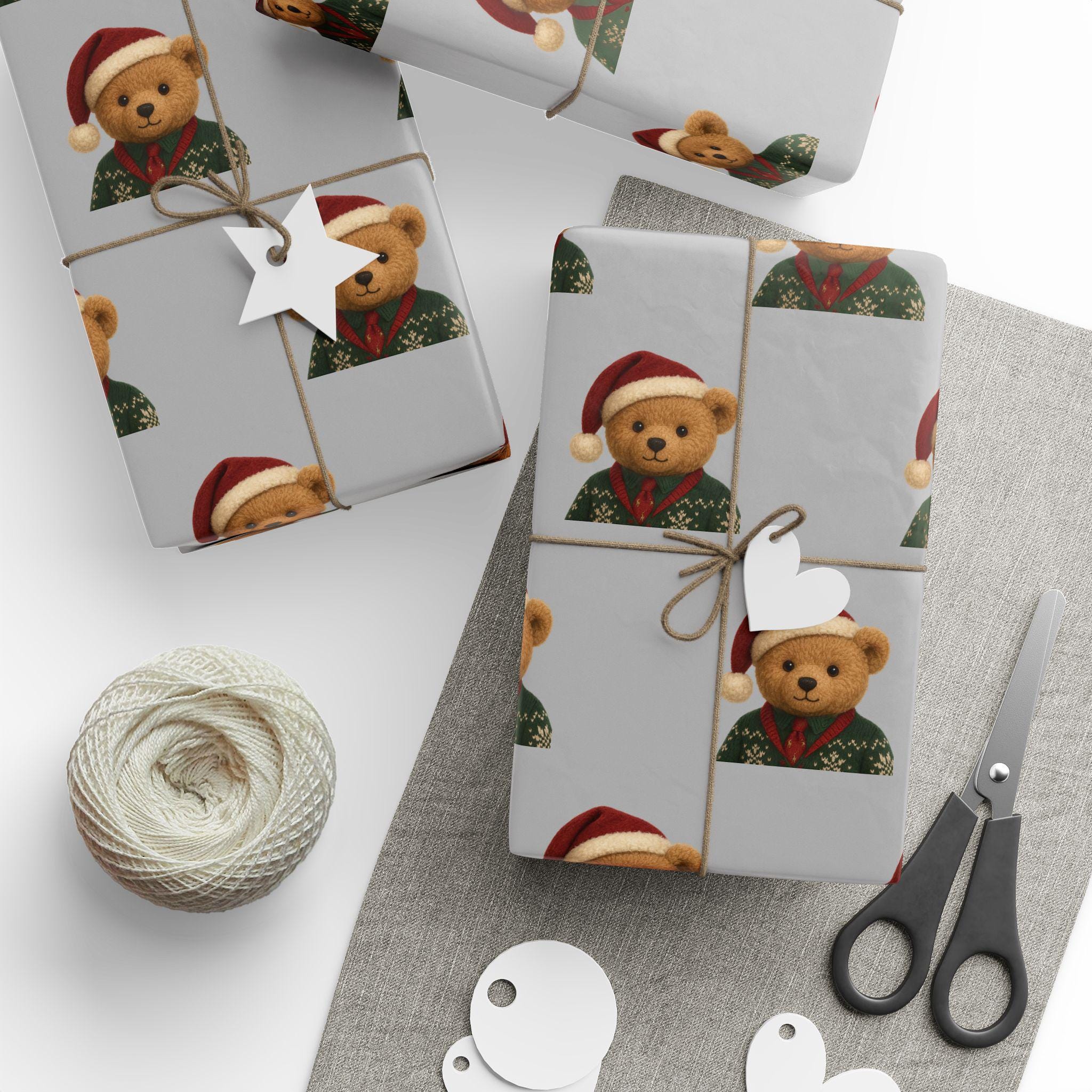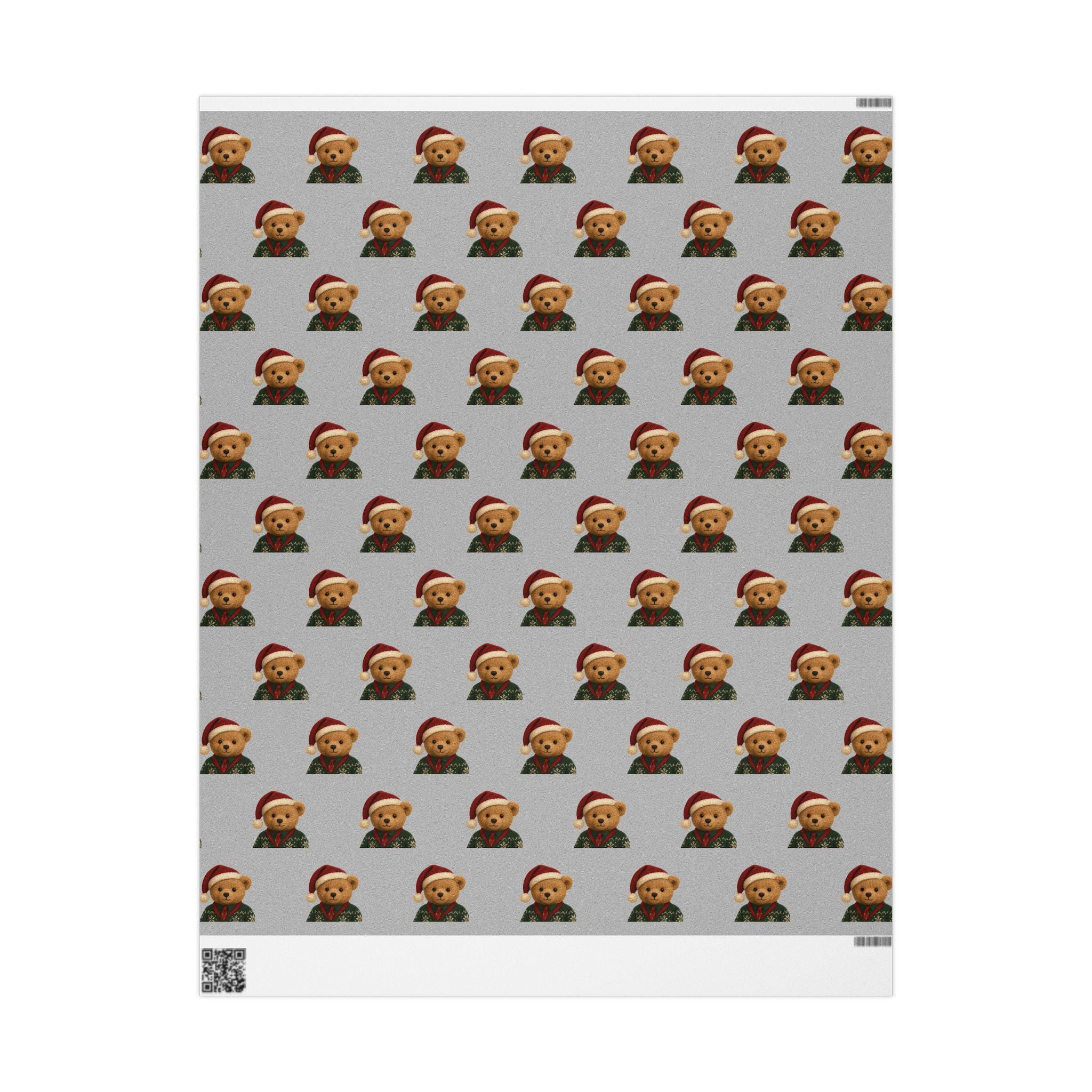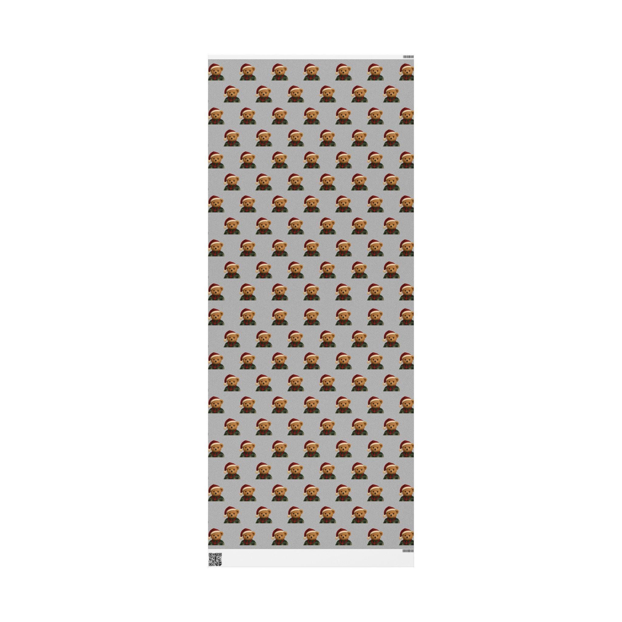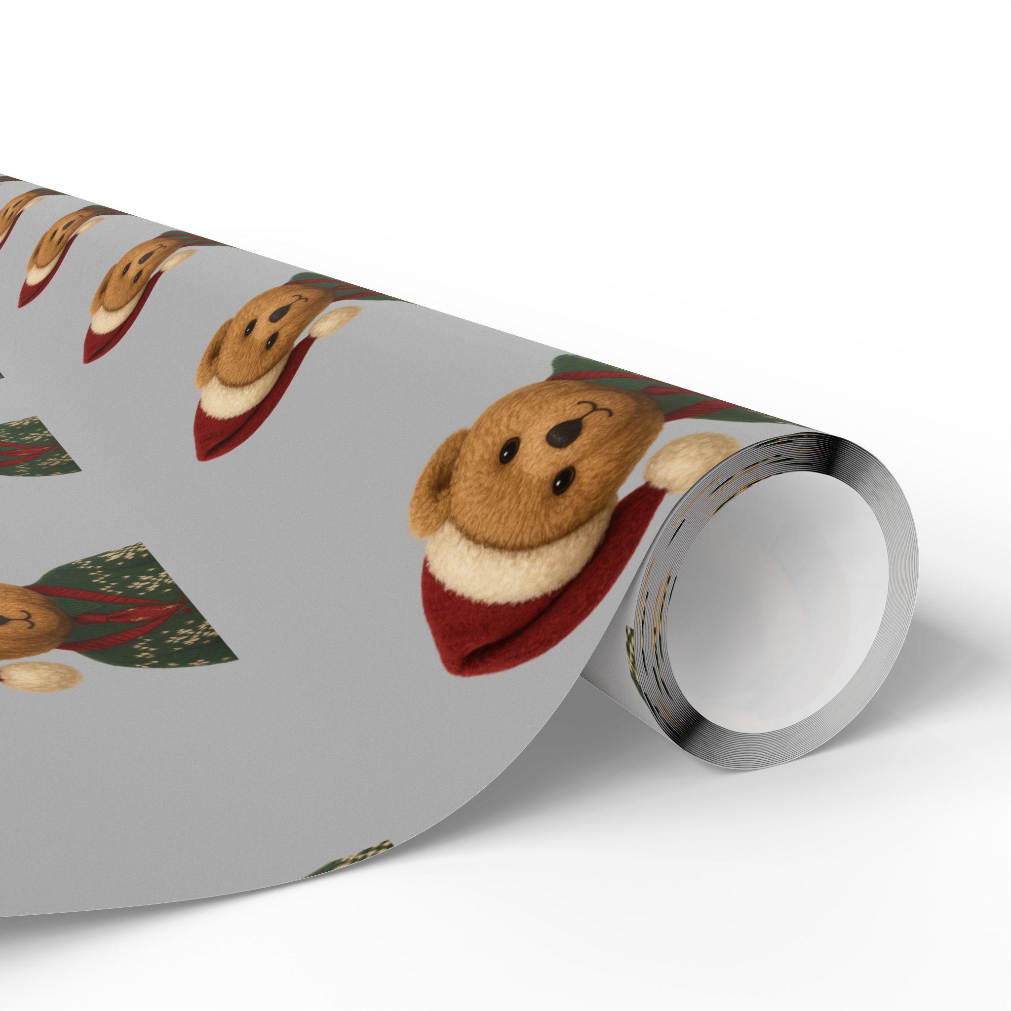 A charming roll of gift wrap that turns every present into a cozy, heartwarming moment. Soft gray paper is patterned with small, smiling teddy bears wearing festive hats and knit sweaters — a gentle, nostalgic design that brings childhood comfort to holiday mornings and winter gatherings. The print sits on one side of sturdy 90gsm fine art paper, available in either glossy or matte finish, and comes in three long sizes to wrap anything from books to boxed treasures. The subtle repeat and neutral background let ribbons and tags stand out while the tiny bears add a touch of whimsy and warmth to each unwrapping.