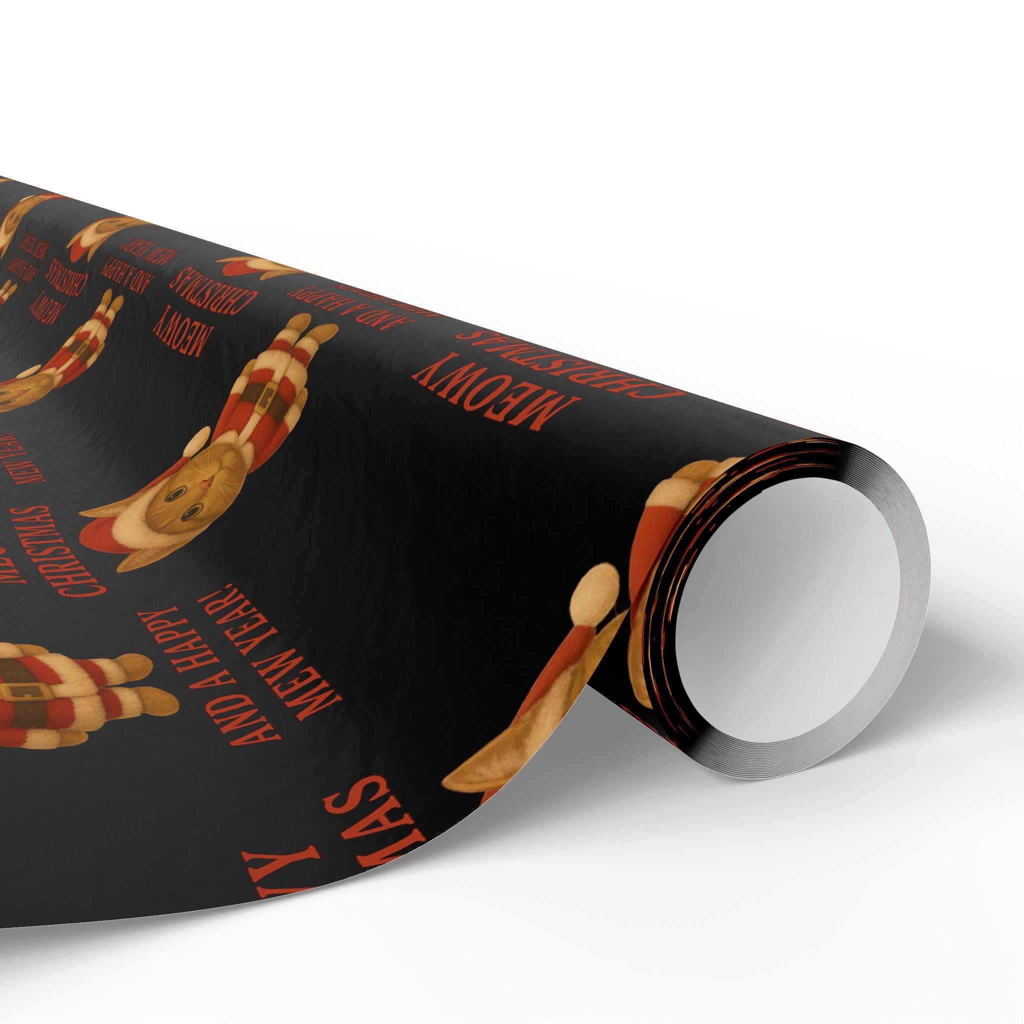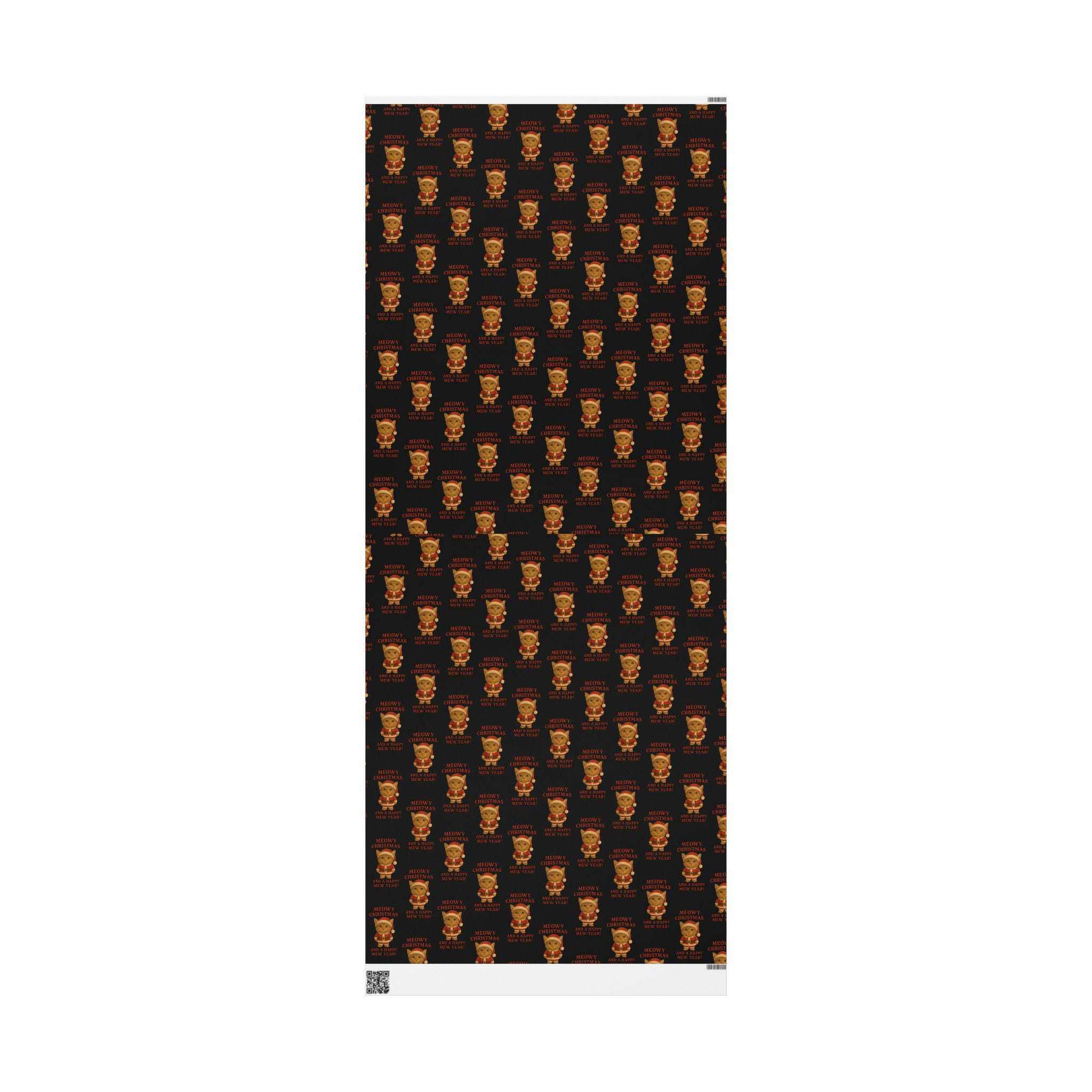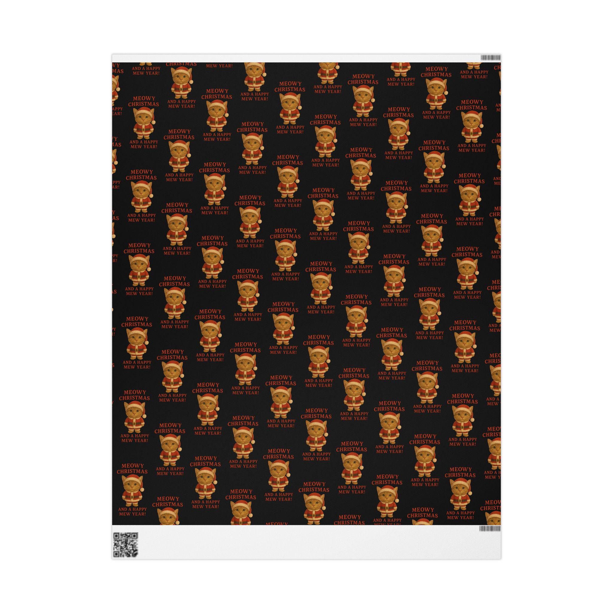 Deep black wrapping paper patterned with warm, vintage-style gingerbread figures and seasonal greetings. The rich, dark background makes the cinnamon-browned cookies and muted red lettering pop, creating a cozy, old-fashioned holiday mood. Use a roll to dress gifts for intimate gatherings, bake-sale swaps, or bringing a nostalgic touch to a hostess present. The smooth matte or glossy surface gives the print depth and a handcrafted feel that complements ribbon and twine.