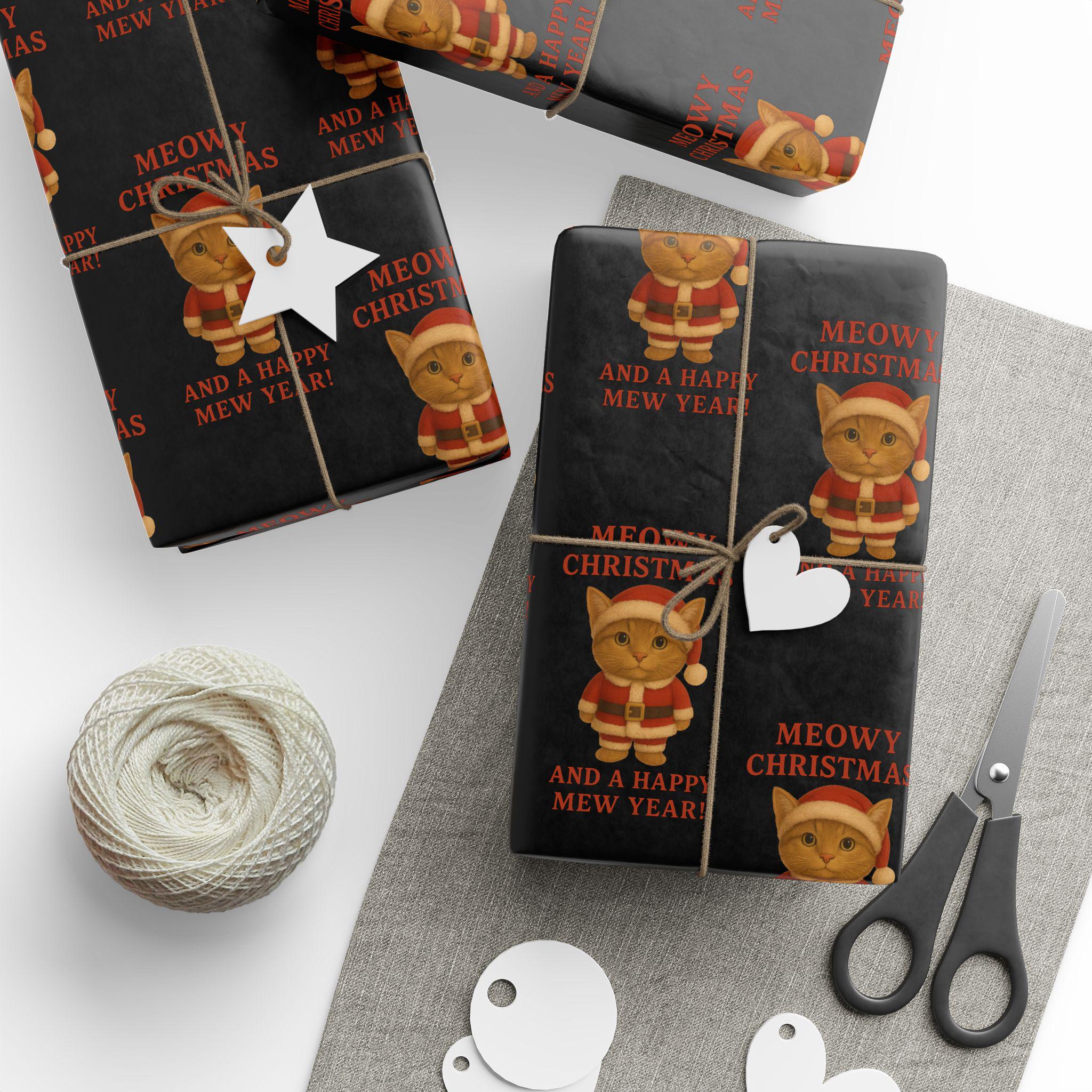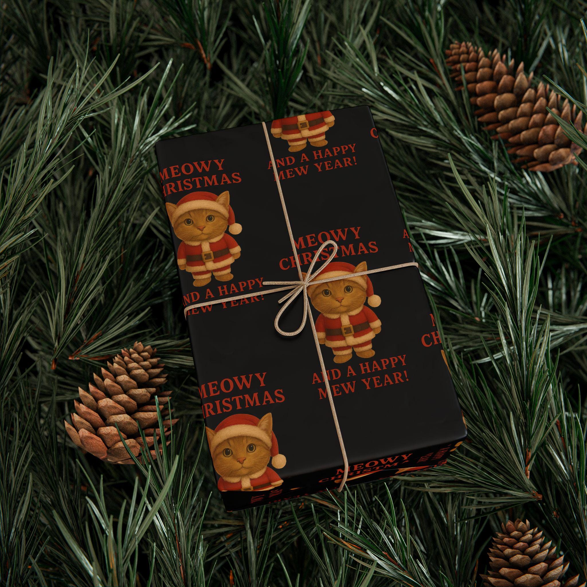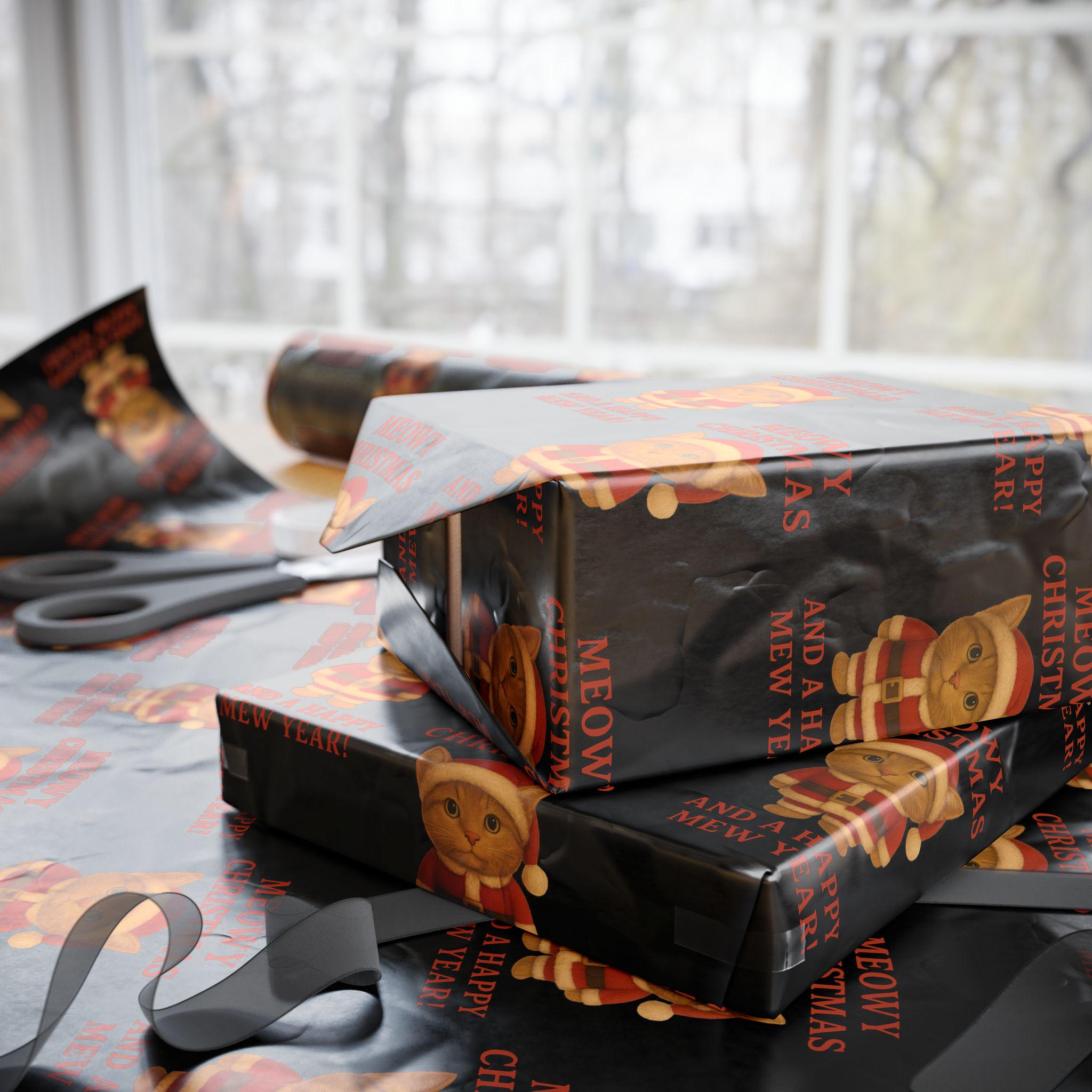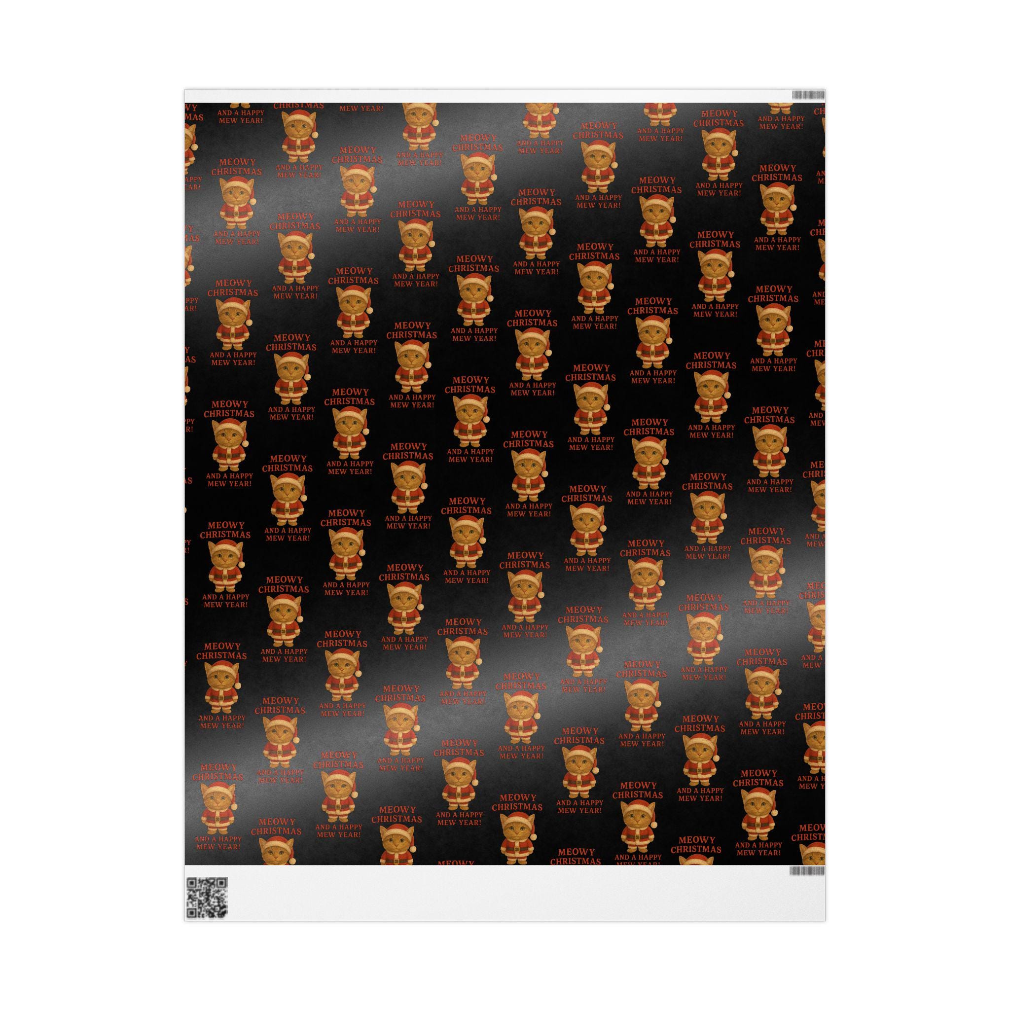 Deep black wrapping paper patterned with warm, vintage-style gingerbread figures and seasonal greetings. The rich, dark background makes the cinnamon-browned cookies and muted red lettering pop, creating a cozy, old-fashioned holiday mood. Use a roll to dress gifts for intimate gatherings, bake-sale swaps, or bringing a nostalgic touch to a hostess present. The smooth matte or glossy surface gives the print depth and a handcrafted feel that complements ribbon and twine.