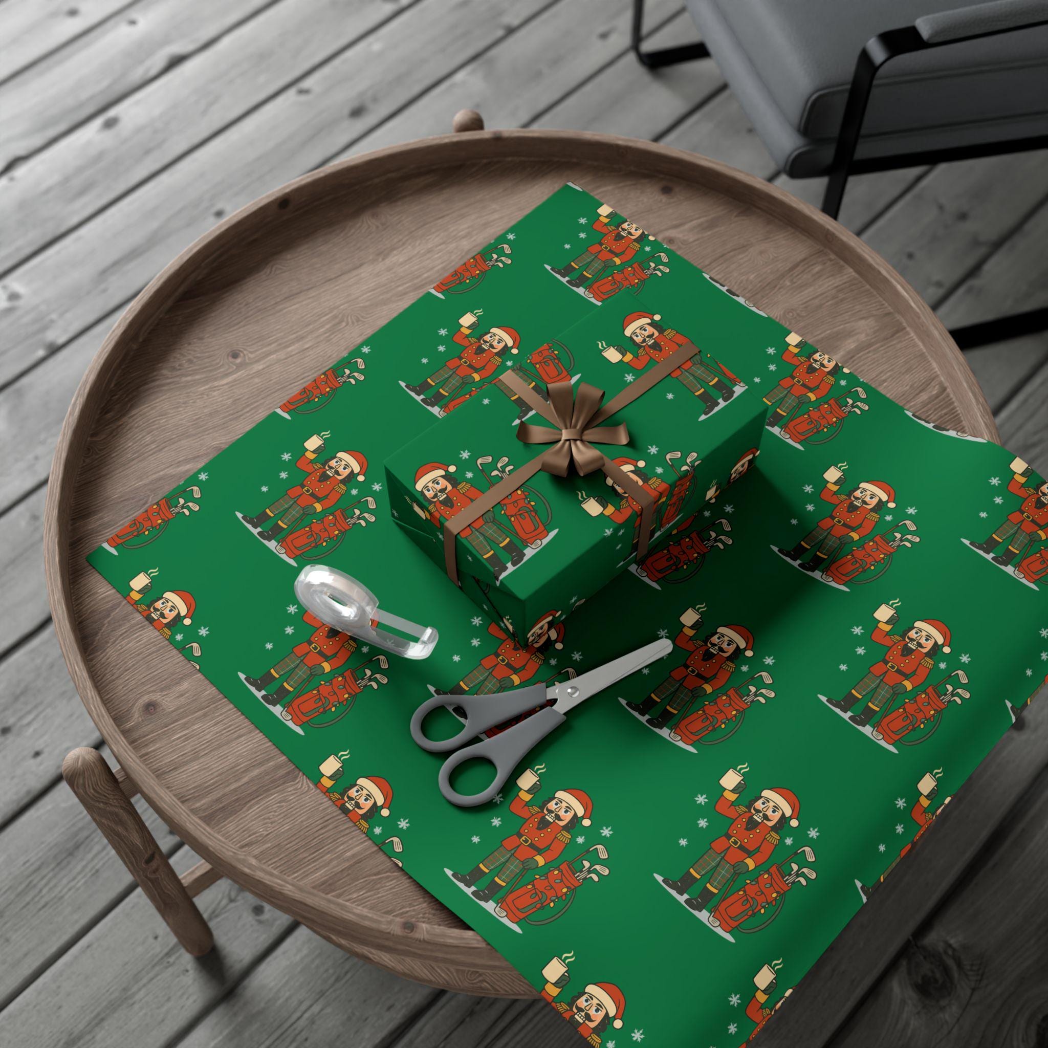 Bring a festive vibe to your gift-wrapping with this Nutcracker x golfer x Christmas wrapping paper. Perfect for the holiday season, golf enthusiasts, and anyone looking to add some fun to their presents. Whether you're wrapping gifts for Christmas, a golf lover's birthday, or any other celebration, this wrapping paper will make your presents stand out.