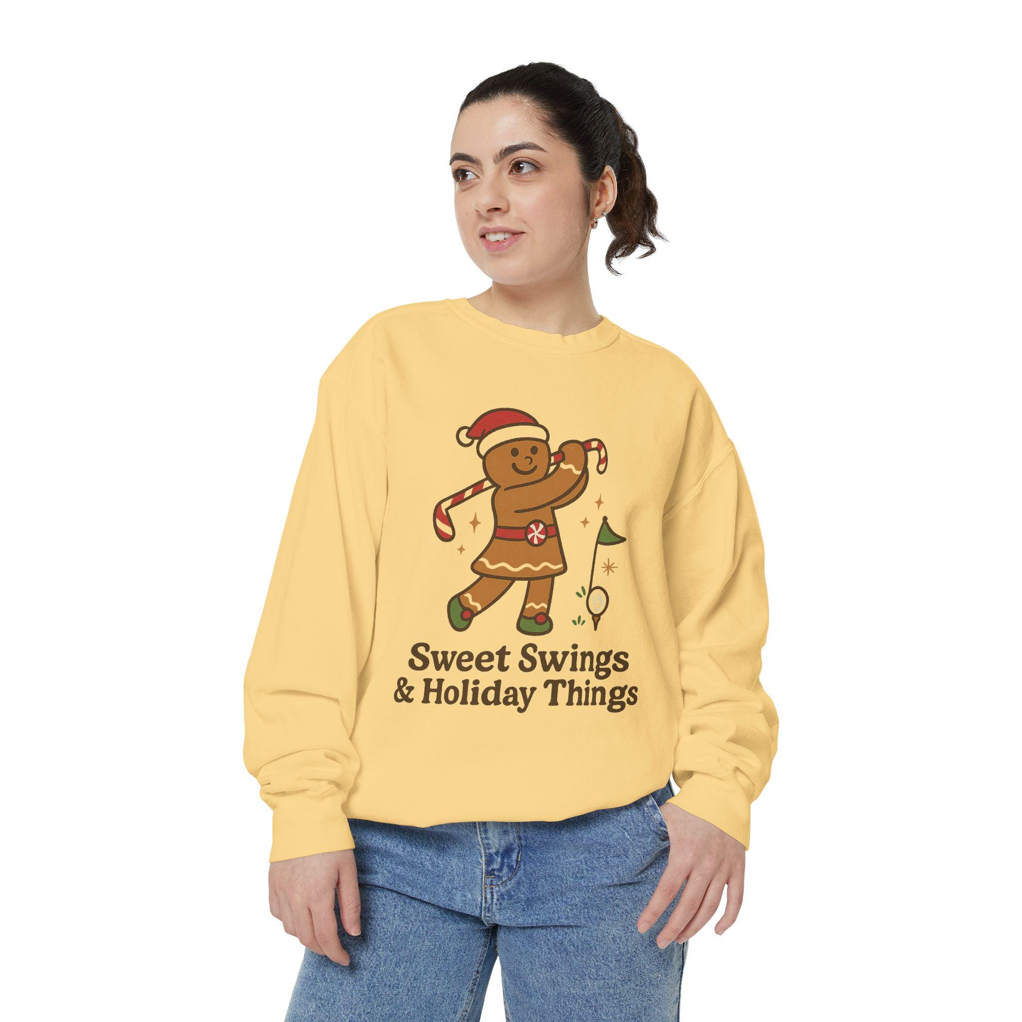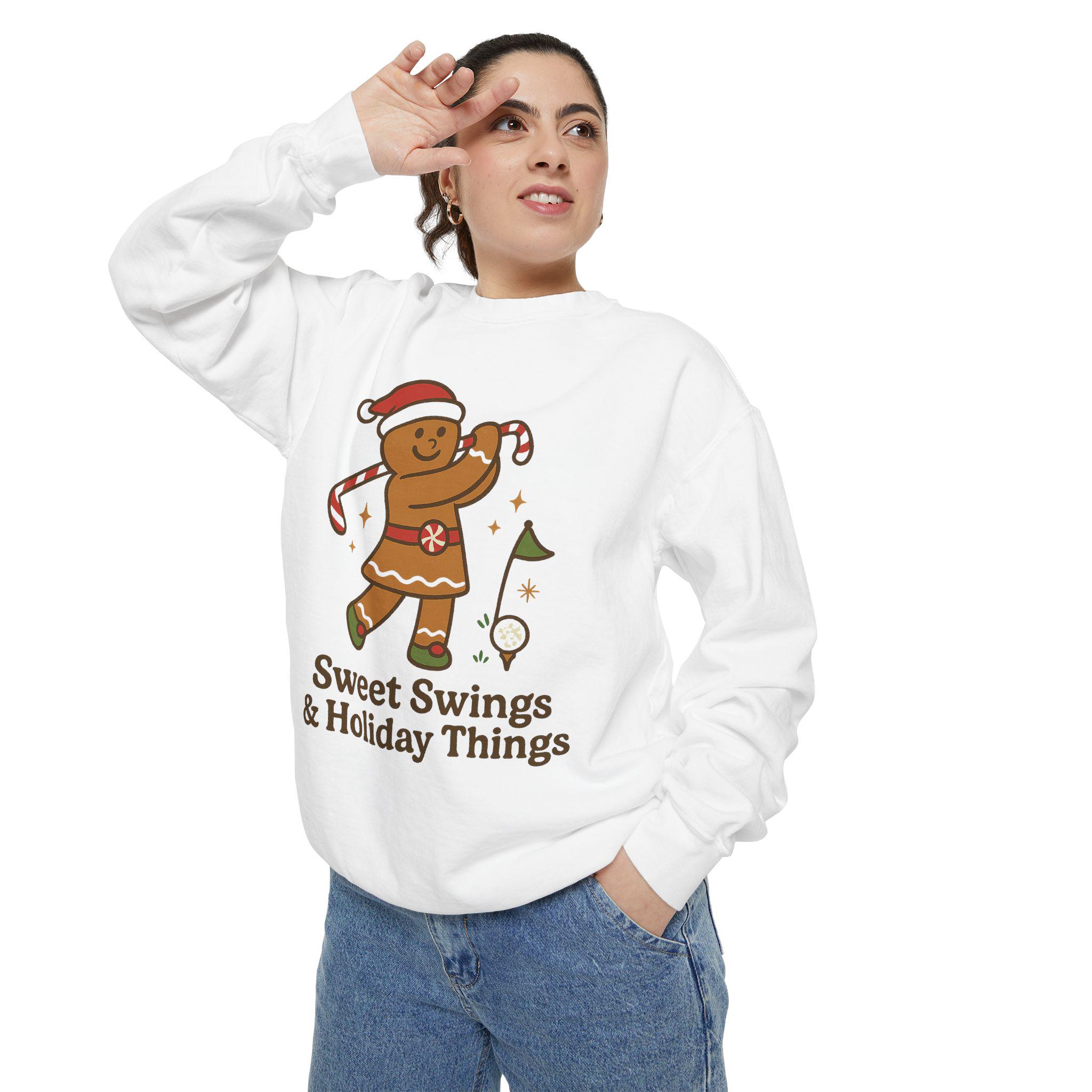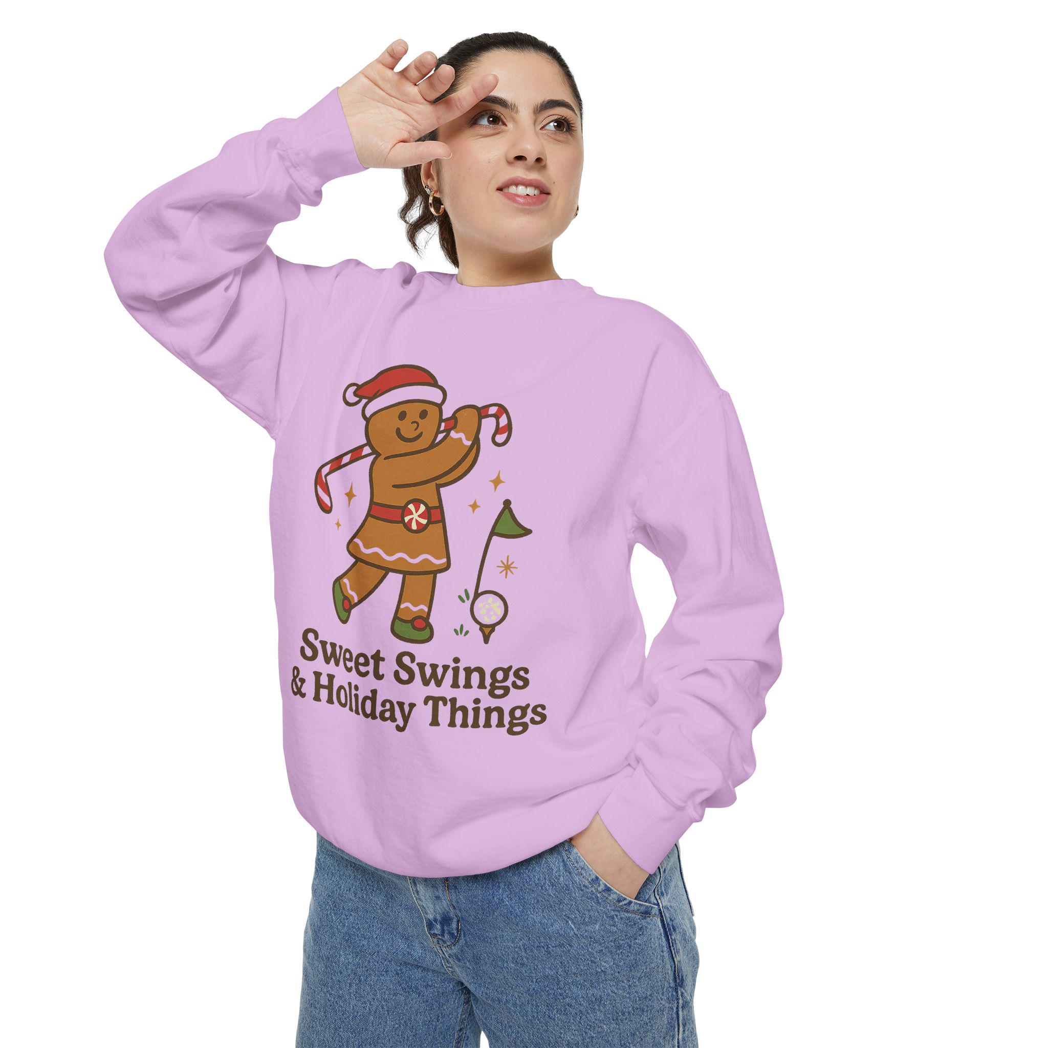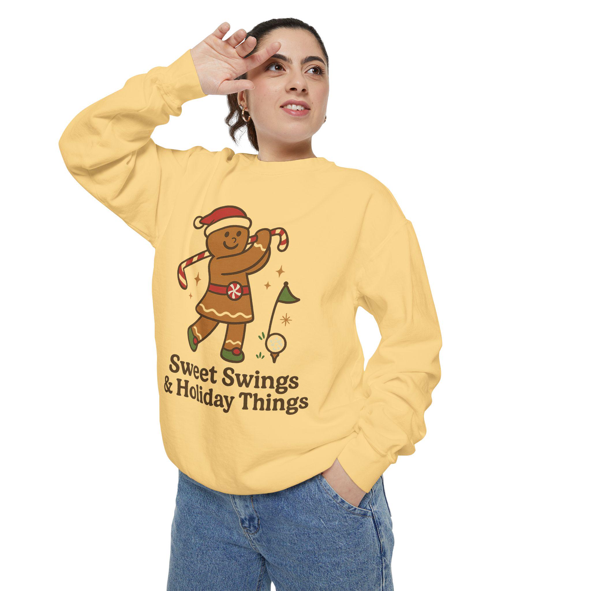 This relaxed, garment-dyed sweatshirt feels like a cozy winter evening wrapped in a favorite blanket. The soft ring-spun cotton blend and medium-heavy weight give it a substantial, comforting drape while the ribbed collar, cuffs and hem keep the silhouette neat. A playful embroidered gingerbread figure and festive lettering add a homespun holiday charm that settles into everyday wear — whether you’re sipping cocoa by the window, trimming the tree, or strolling a winter market. The twill neck tape and half-moon back patch bring durable, thoughtful construction that holds shape wear after wash. Low-impact dyes and a sewn-in label finish the piece with quiet, responsible details.