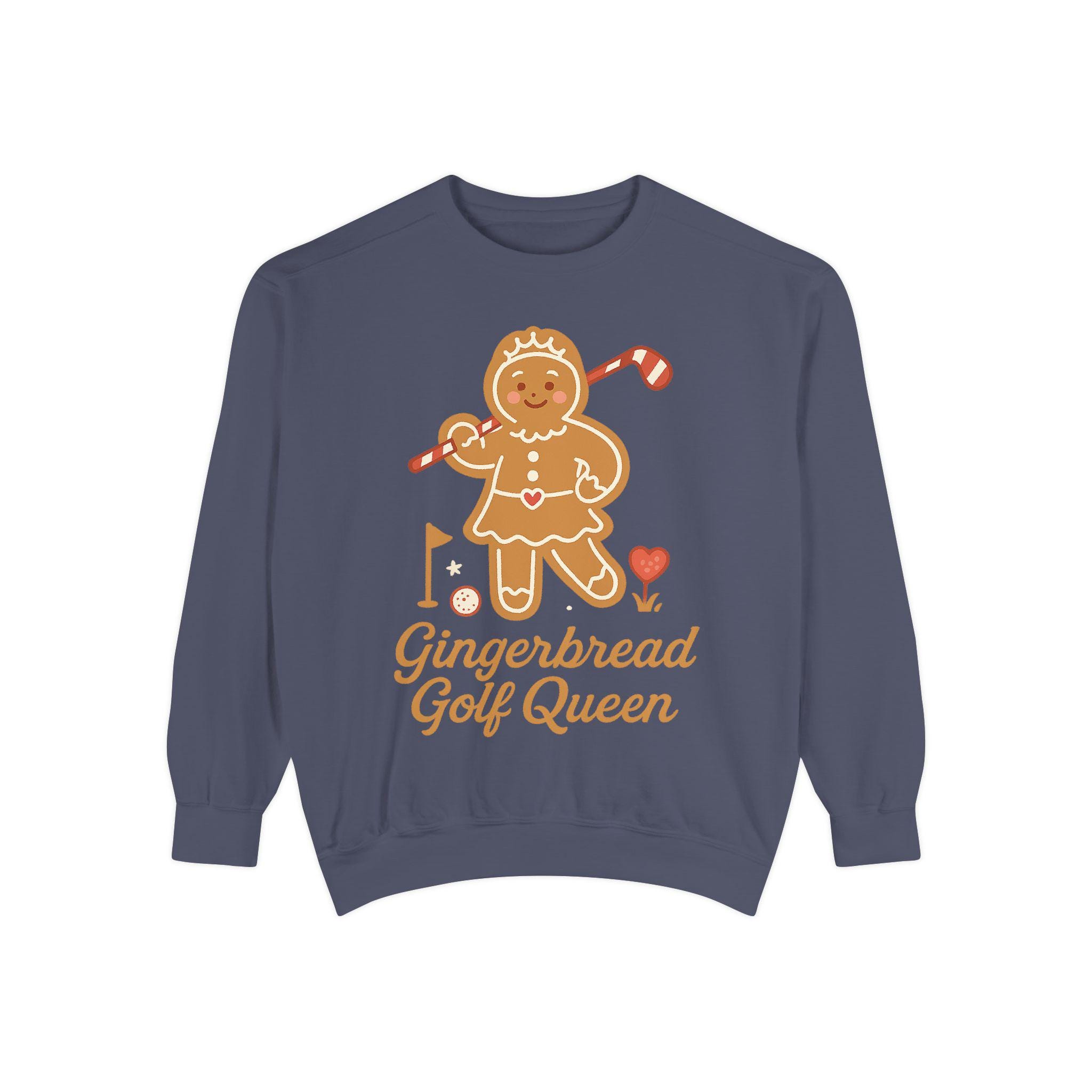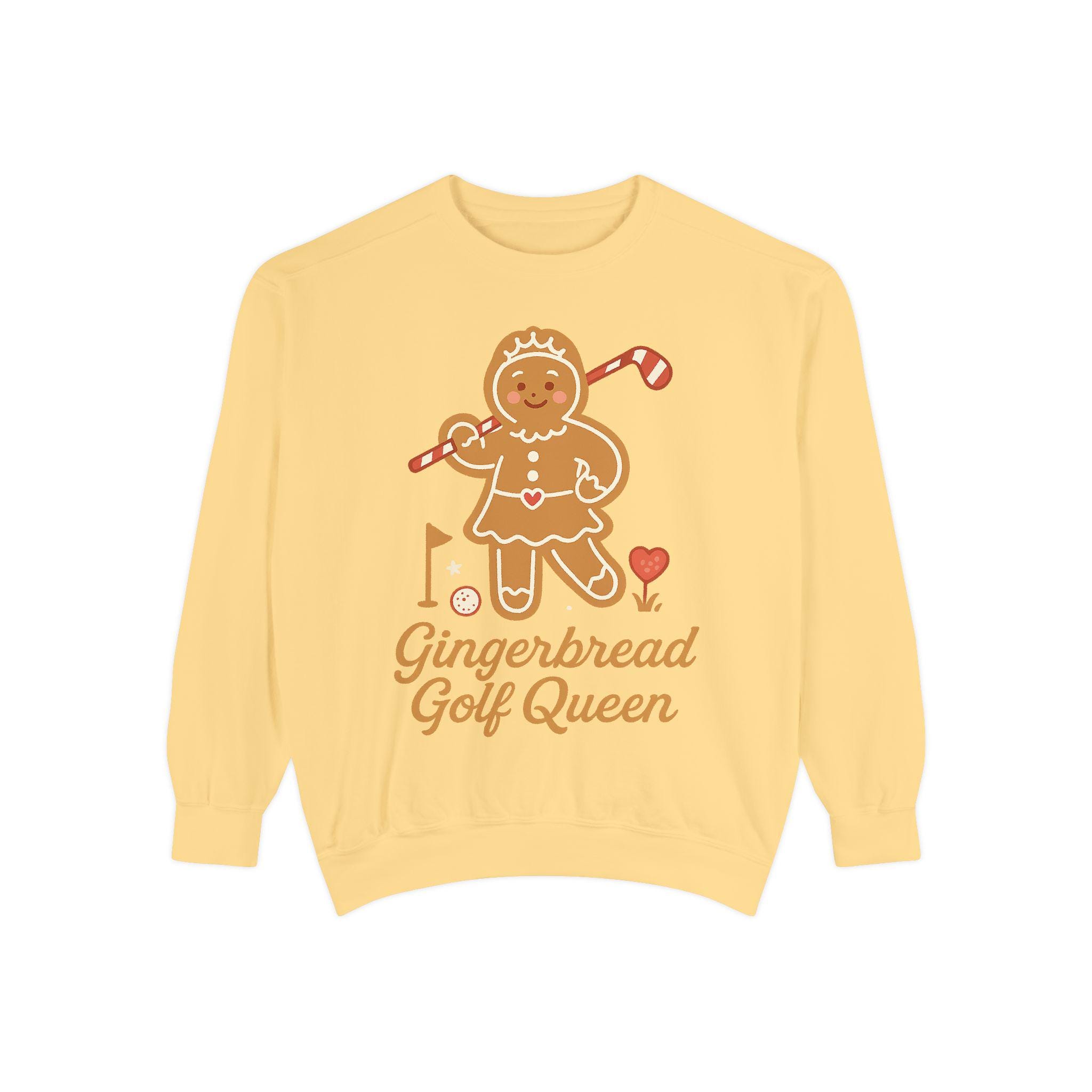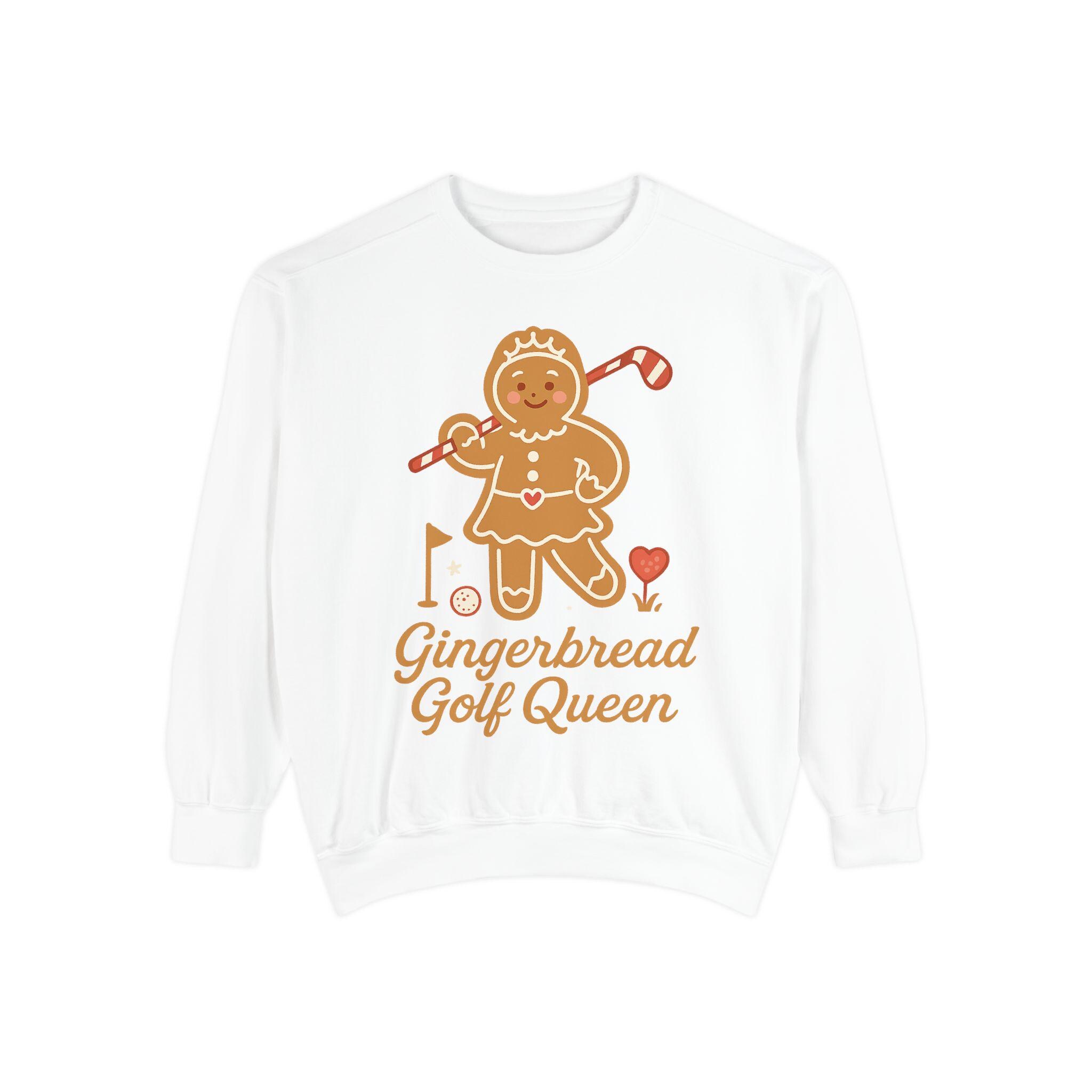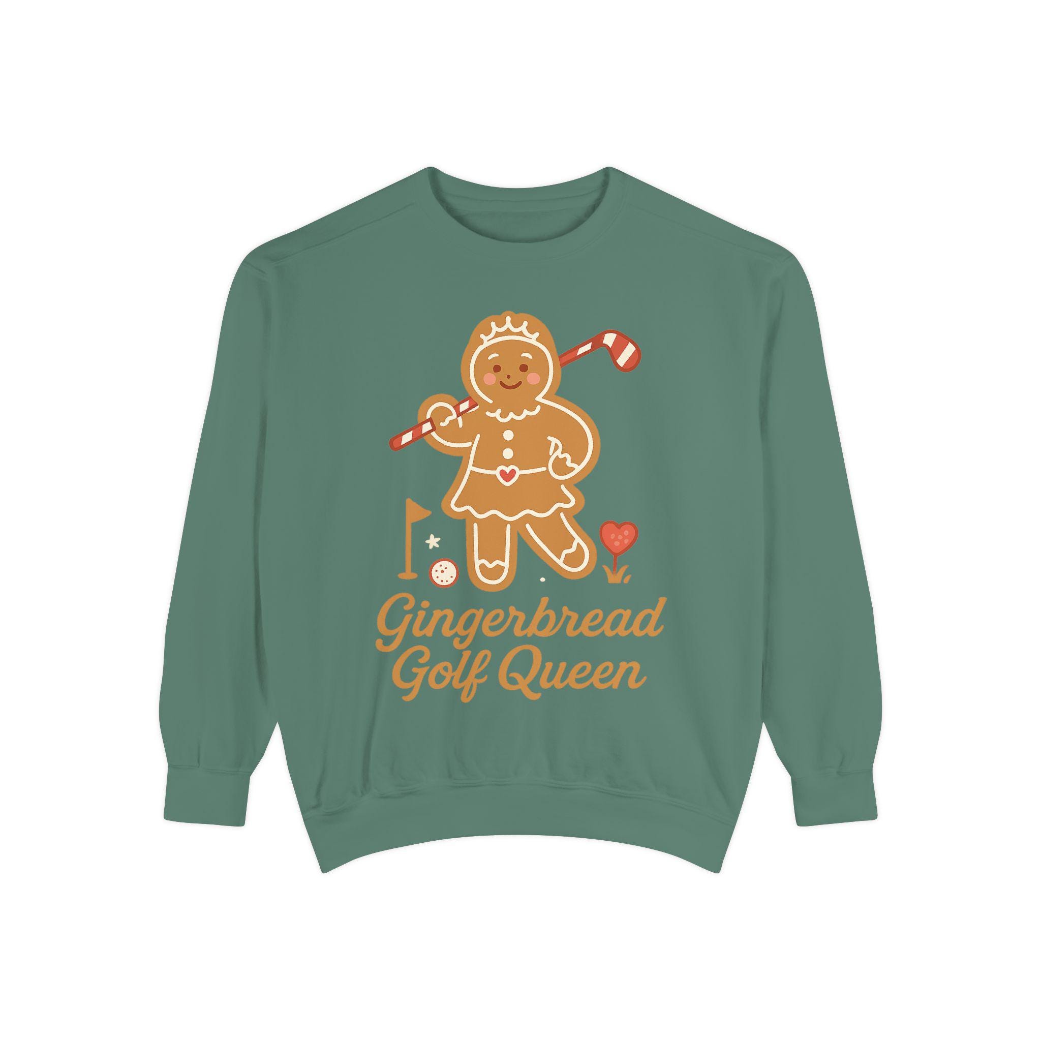 This Gingerbread Golf Queen sweatshirt combines whimsical charm with a touch of holiday spirit. The design features a confident gingerbread woman golfer in mid-swing, wearing a sparkly tiara and holding a peppermint-striped golf club. Perfect for those who love golf and festive vibes, this sweatshirt is ideal for holiday gatherings, golf enthusiasts, and anyone who enjoys a unique and playful style. It's a cozy and stylish option to wear during the holiday season or any time you want to add a touch of fun to your wardrobe.