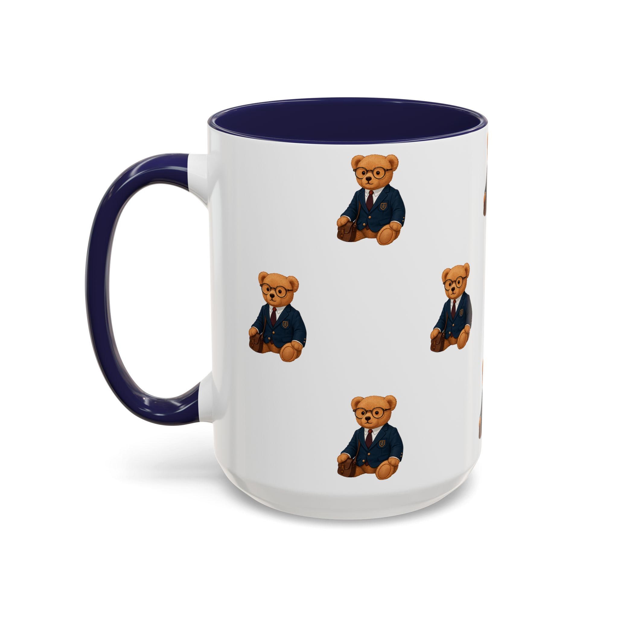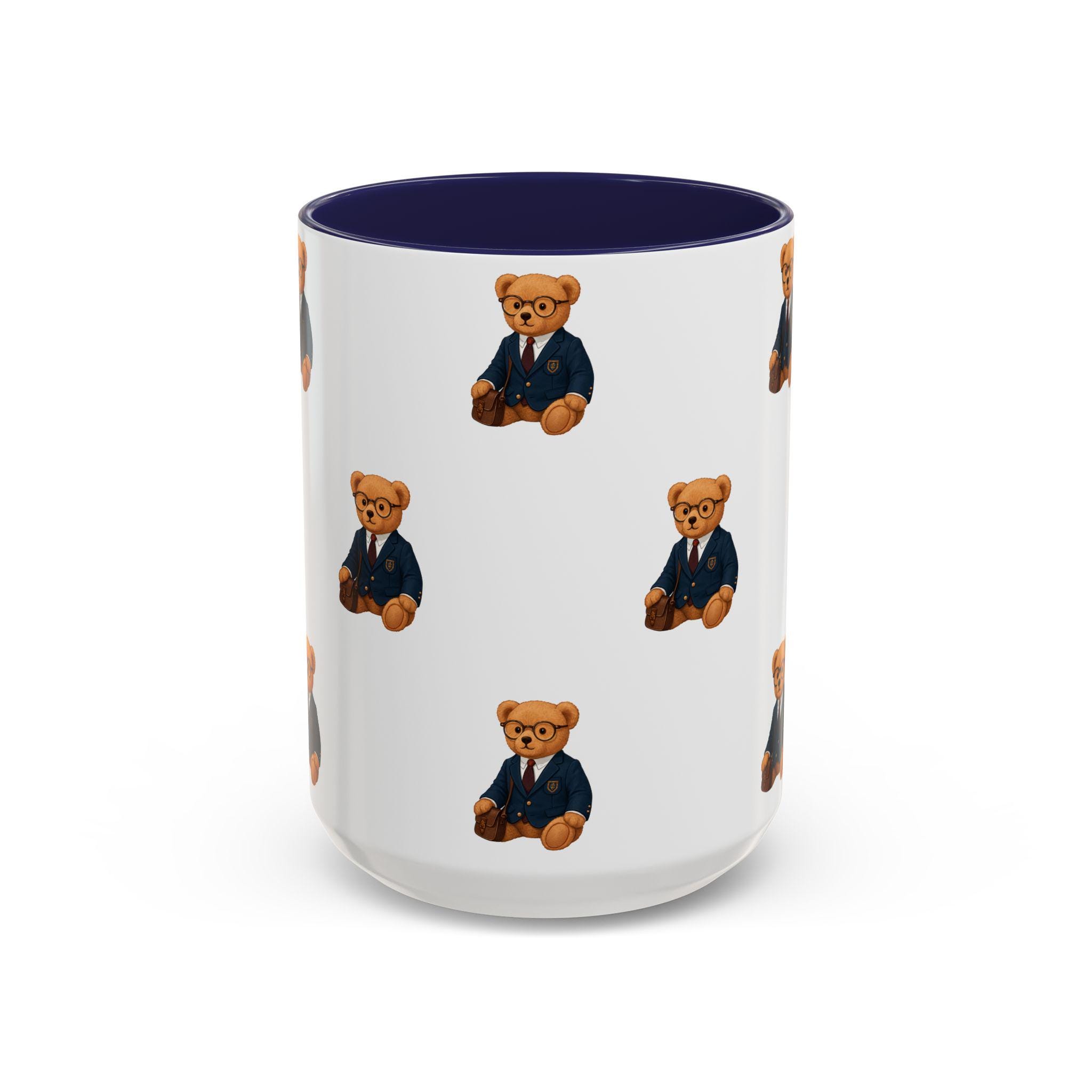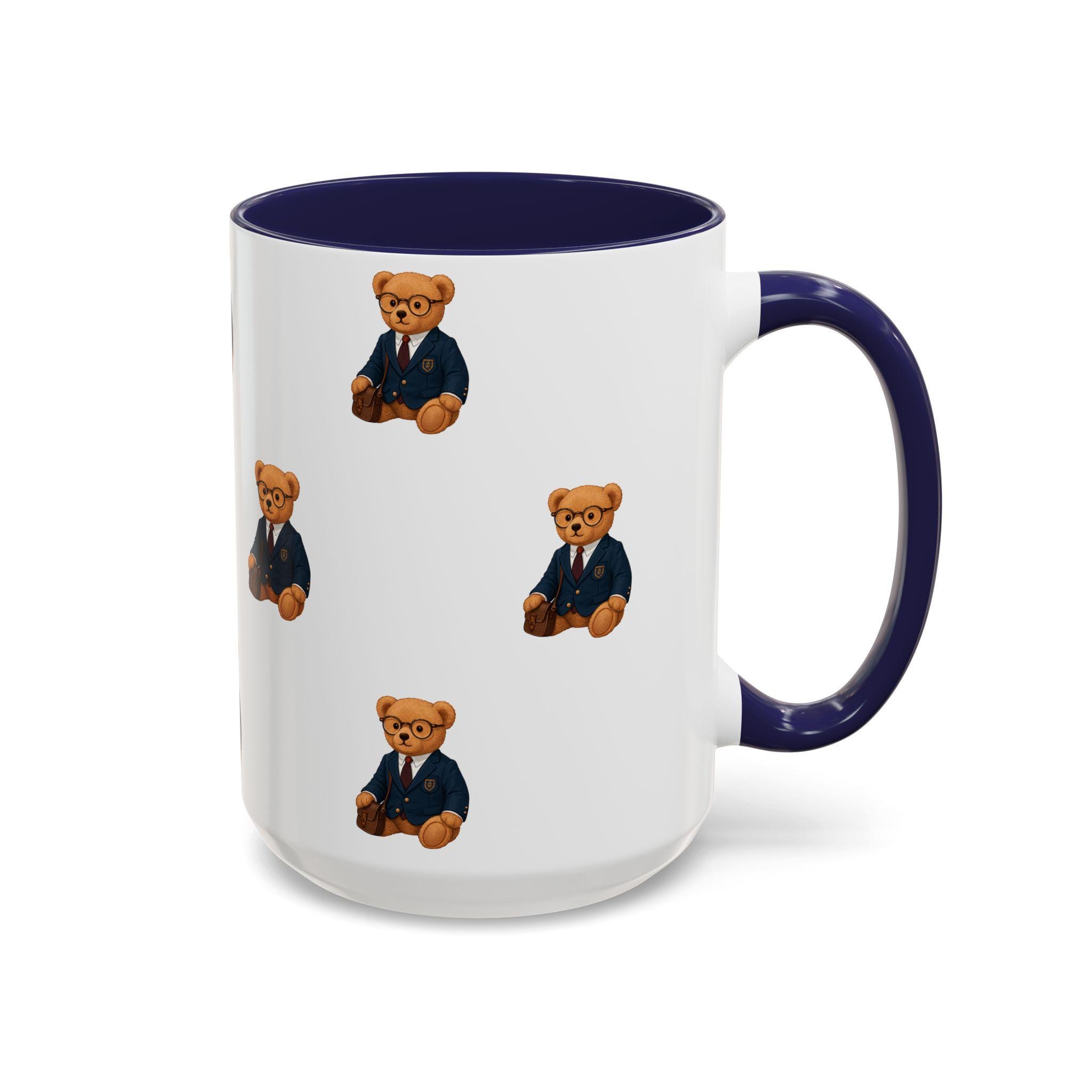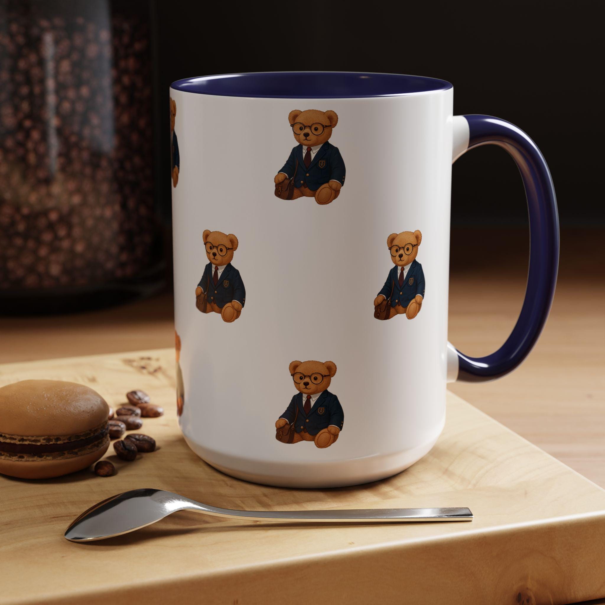Warm mornings, quiet desks, and a little wink of nostalgia — this ceramic mug brings a studious, cozy charm to daily coffee or tea. A repeat pattern of a bespectacled teddy in a navy blazer gives the mug a playful, vintage-schoolroom vibe that reads as both thoughtful and whimsical. The colored interior and handle add a crisp contrast that frames each sip, while the glossy finish keeps the artwork bright through regular use. It sits comfortably in hand and fits right into routine moments: early study sessions, slow weekend reading, or as a companion on office days when you want a touch of personality at your workspace.