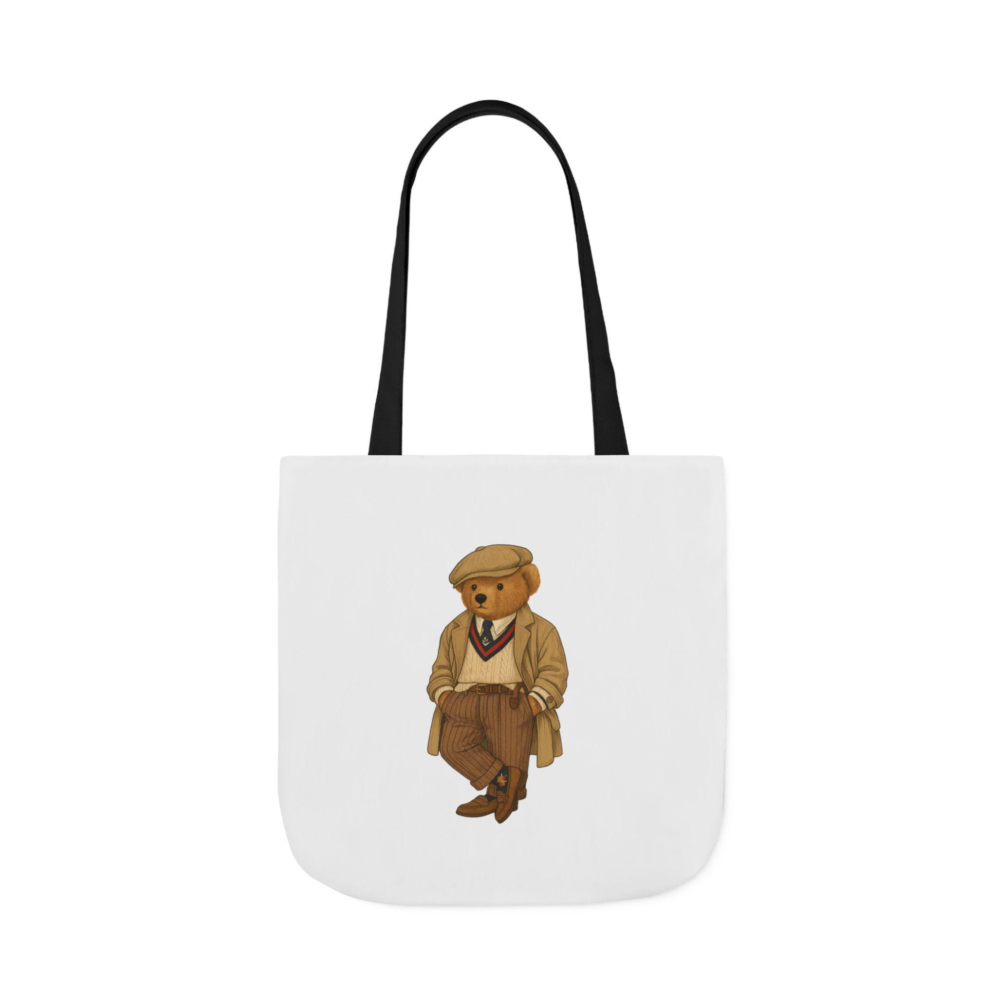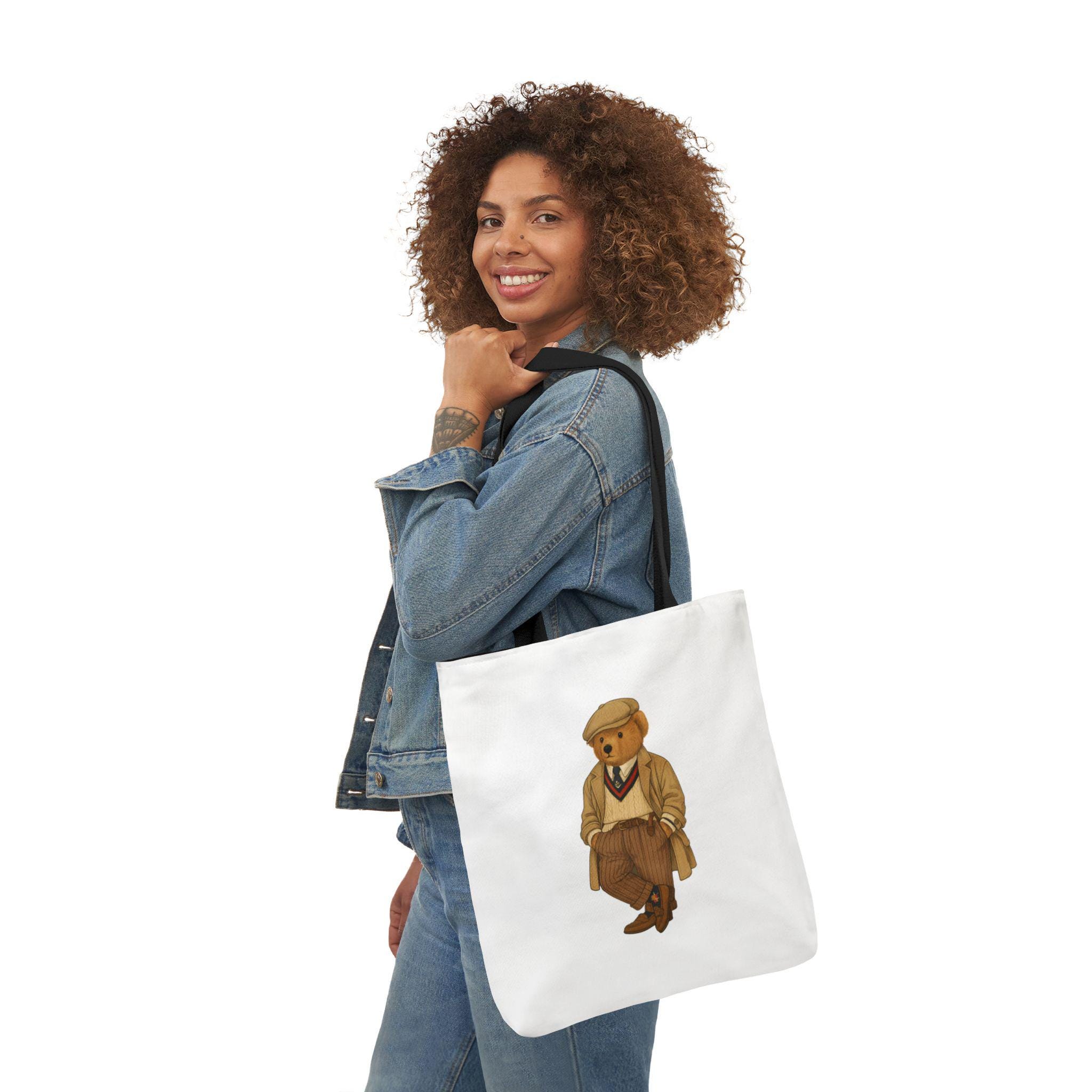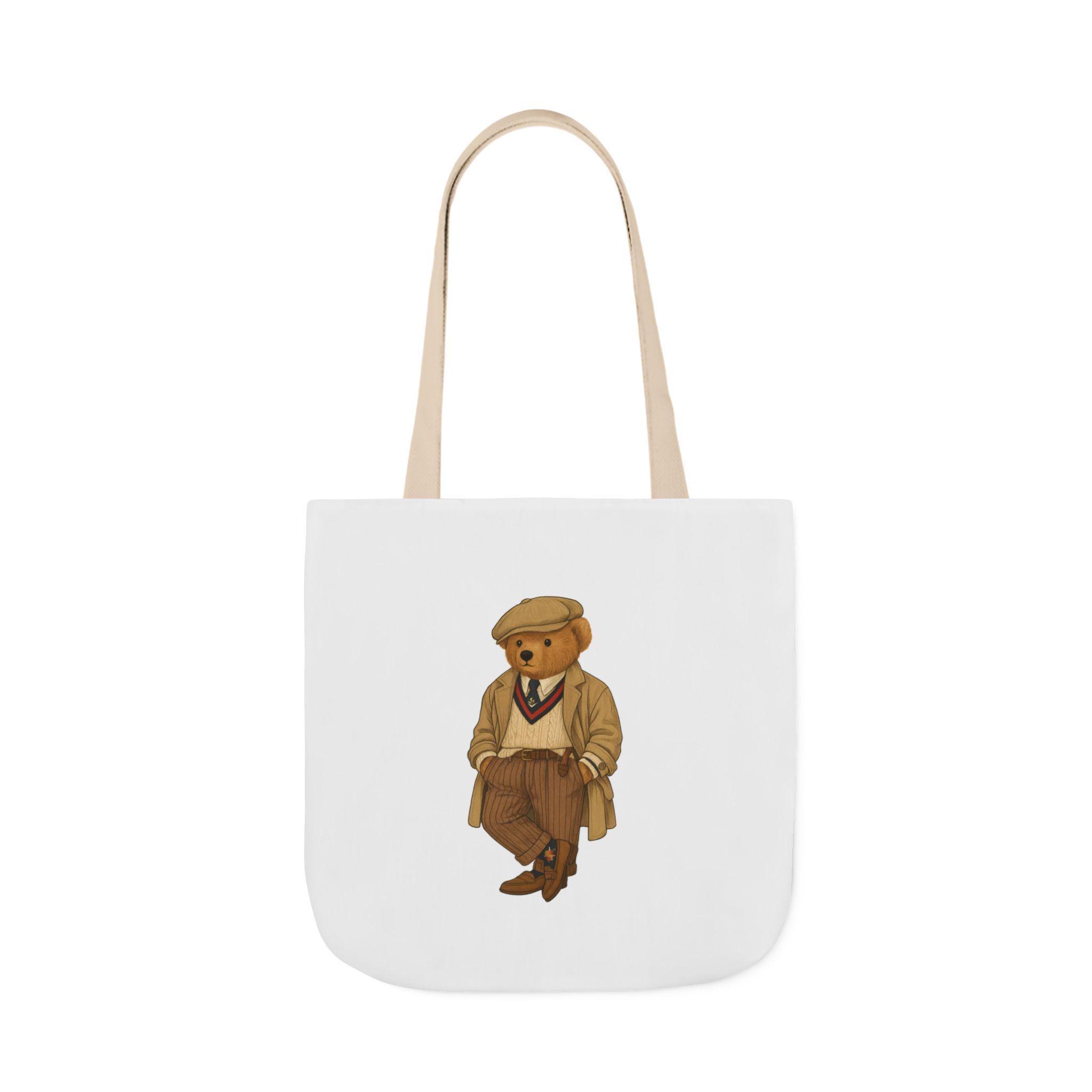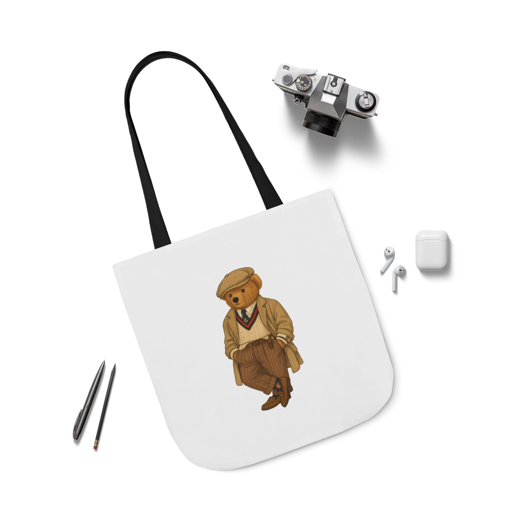This canvas tote brings warm nostalgia and quiet charm to everyday errands. The soft, fine-weave polyester canvas holds a detailed all-over print of a vintage-style teddy bear in dapper attire, sitting thoughtfully as if waiting for a slow afternoon stroll. Light-colored straps add a gentle contrast and the boxed corners create roomy depth for groceries, books, or a knitting project. Practical yet sentimental — it moves easily from market runs to slow coffeeshop afternoons while adding a touch of gentle whimsy to your day.