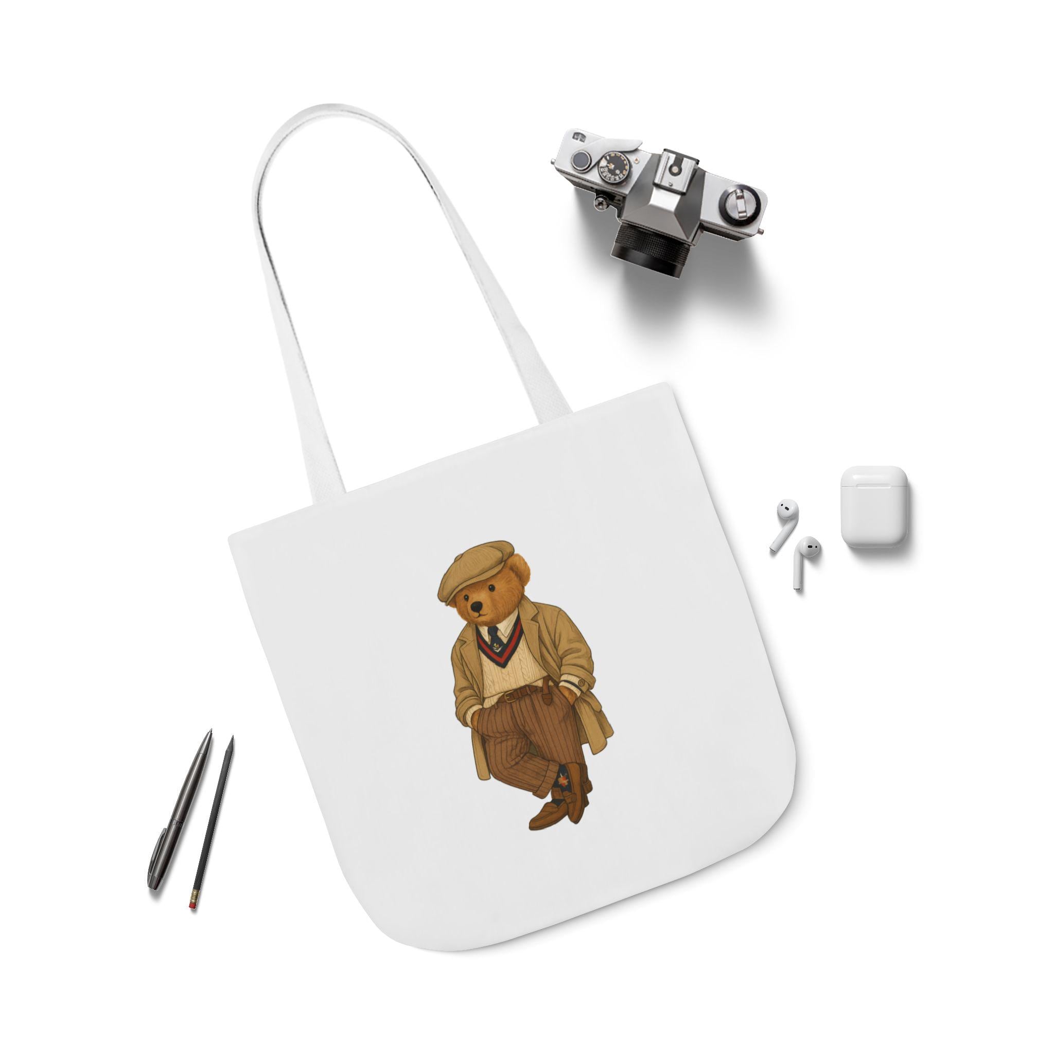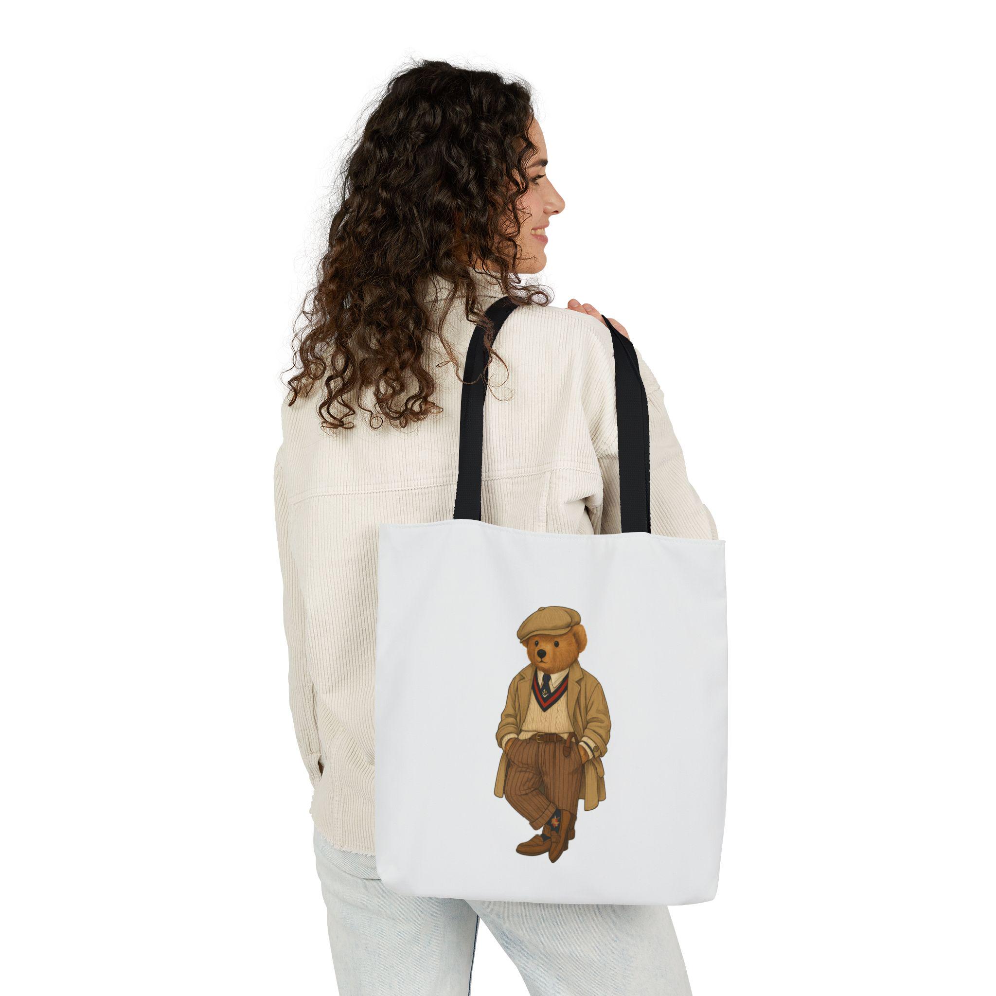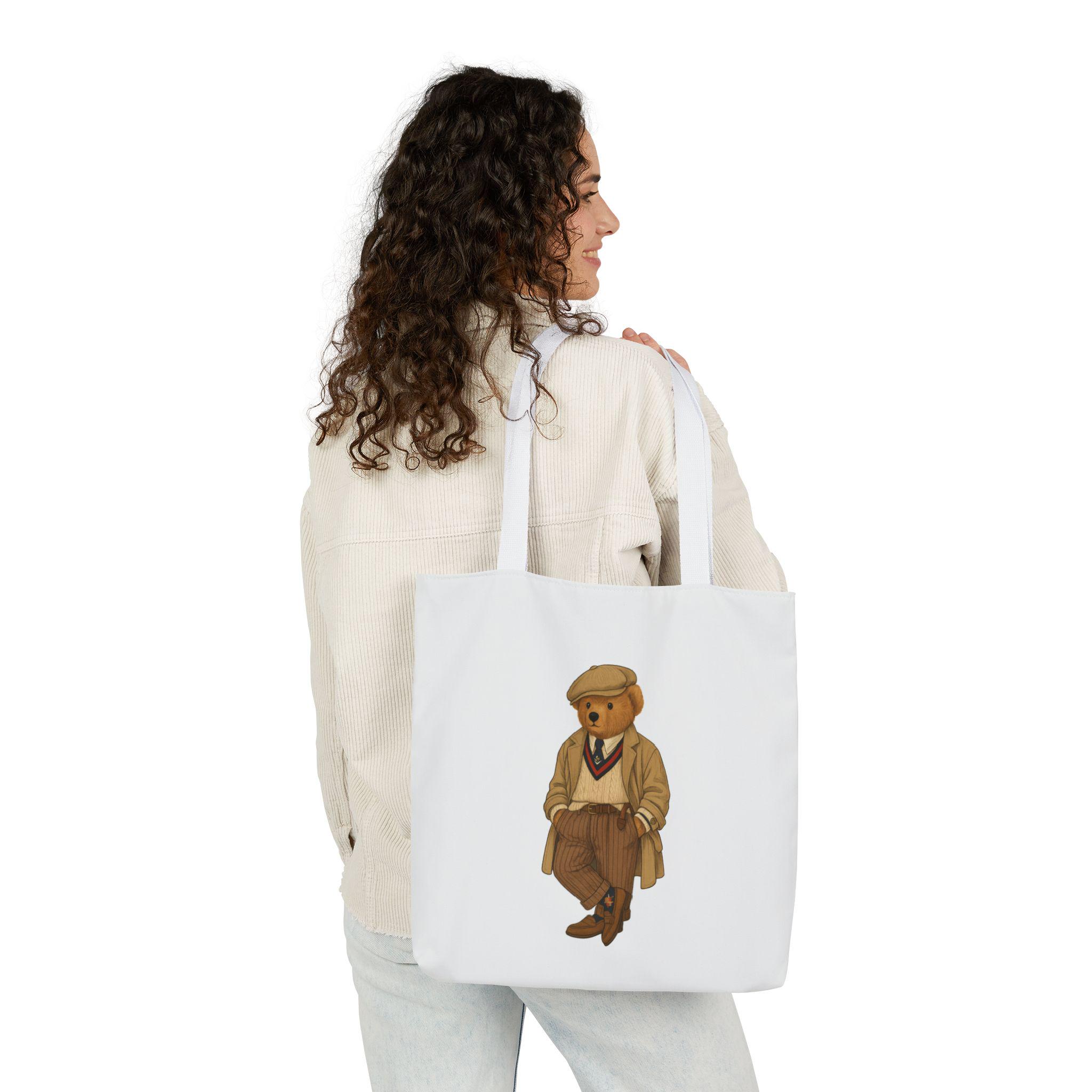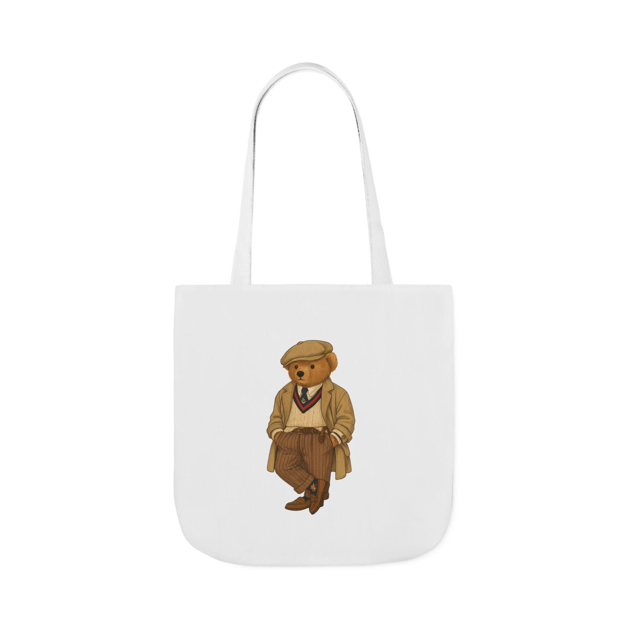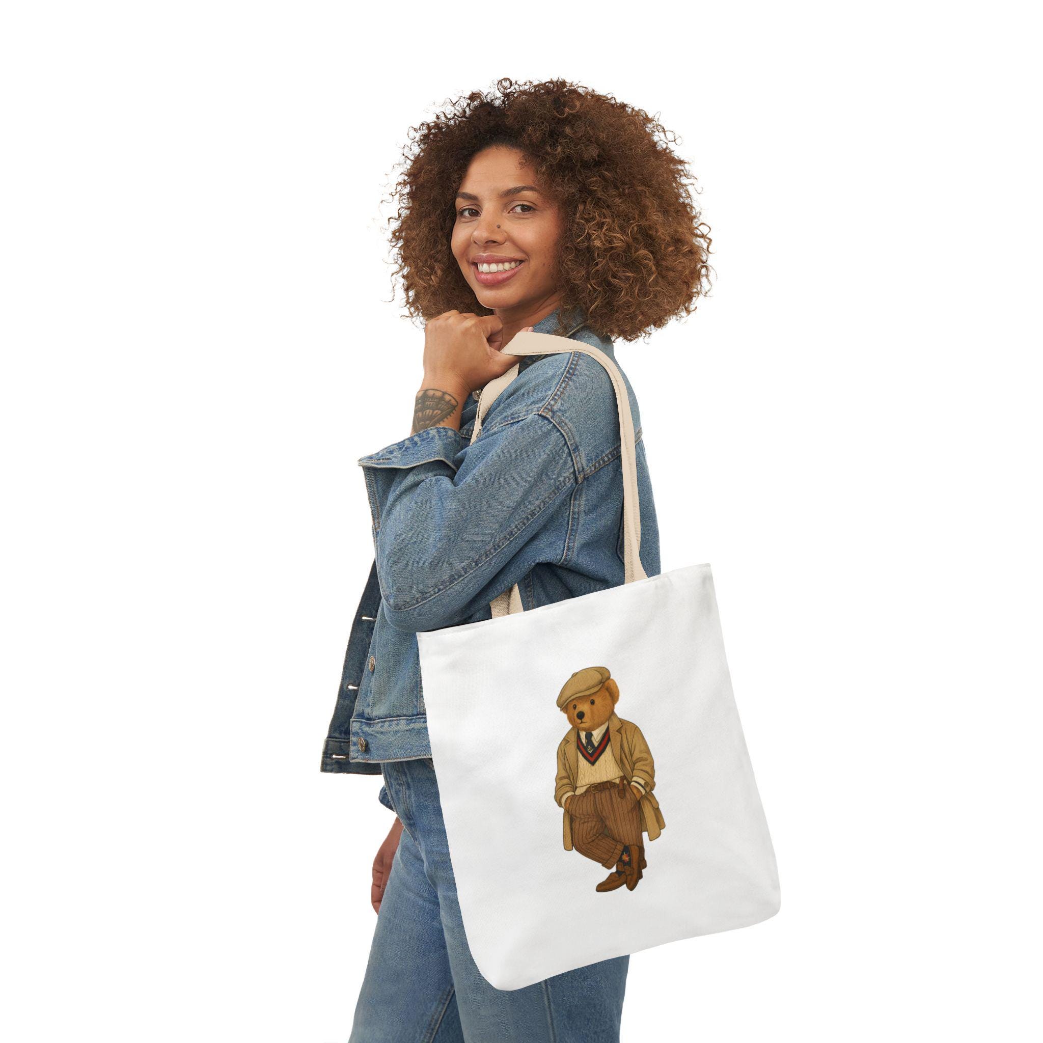This canvas tote brings warm nostalgia and quiet charm to everyday errands. The soft, fine-weave polyester canvas holds a detailed all-over print of a vintage-style teddy bear in dapper attire, sitting thoughtfully as if waiting for a slow afternoon stroll. Light-colored straps add a gentle contrast and the boxed corners create roomy depth for groceries, books, or a knitting project. Practical yet sentimental — it moves easily from market runs to slow coffeeshop afternoons while adding a touch of gentle whimsy to your day.