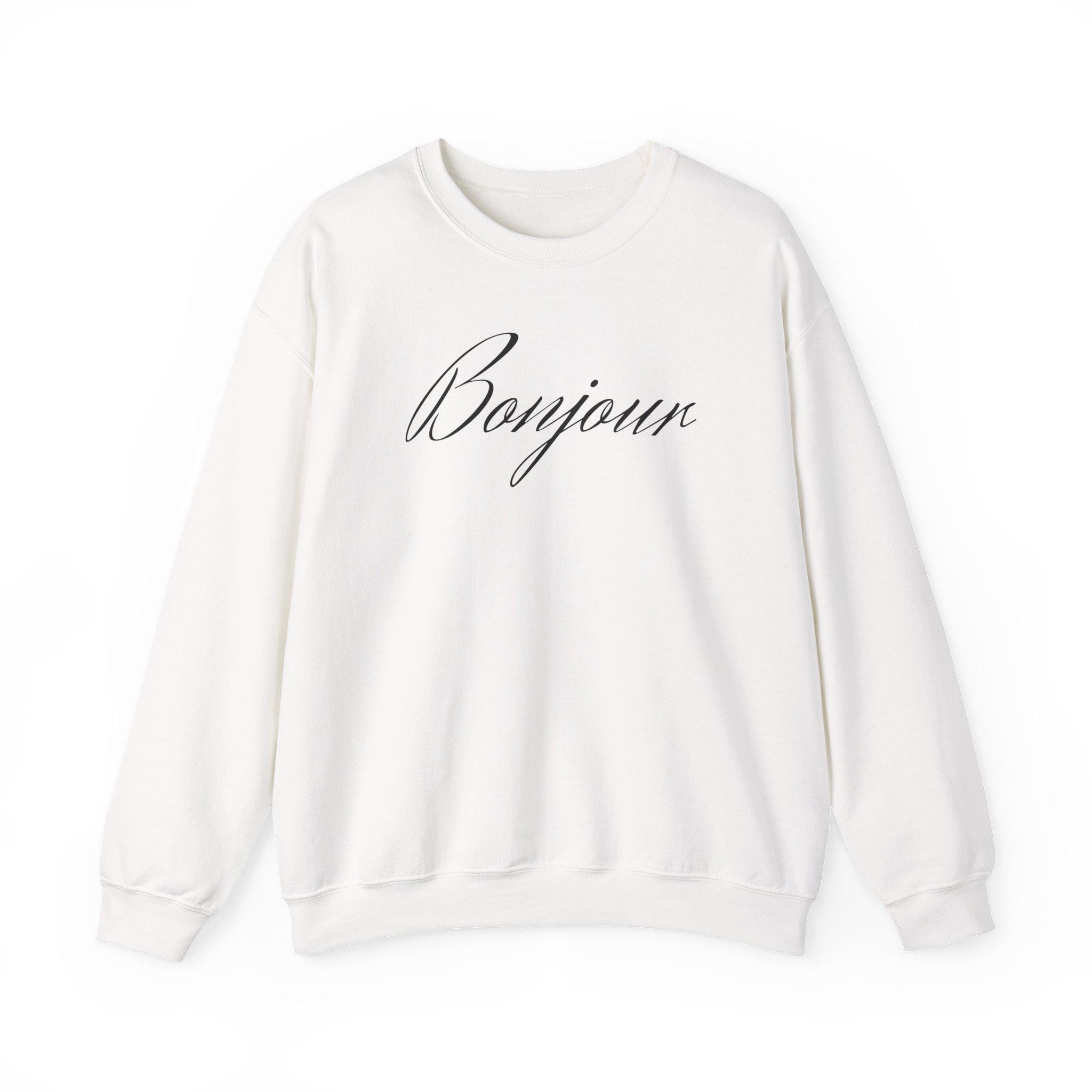 A soft, mid-weight crewneck that reads like a quiet hello. The clean ivory fabric and delicate script on the chest create a relaxed, Parisian-inspired mood — easy to layer over a tee or wear solo on cool mornings. The classic fit and ribbed neckline hold shape through repeated wear. Subtle details like tear-away inner label and durable double-needle stitching keep the focus on comfort and longevity. Wear it as your go-to slow morning piece, or pull it on after a long day when you want something calm and effortlessly chic.