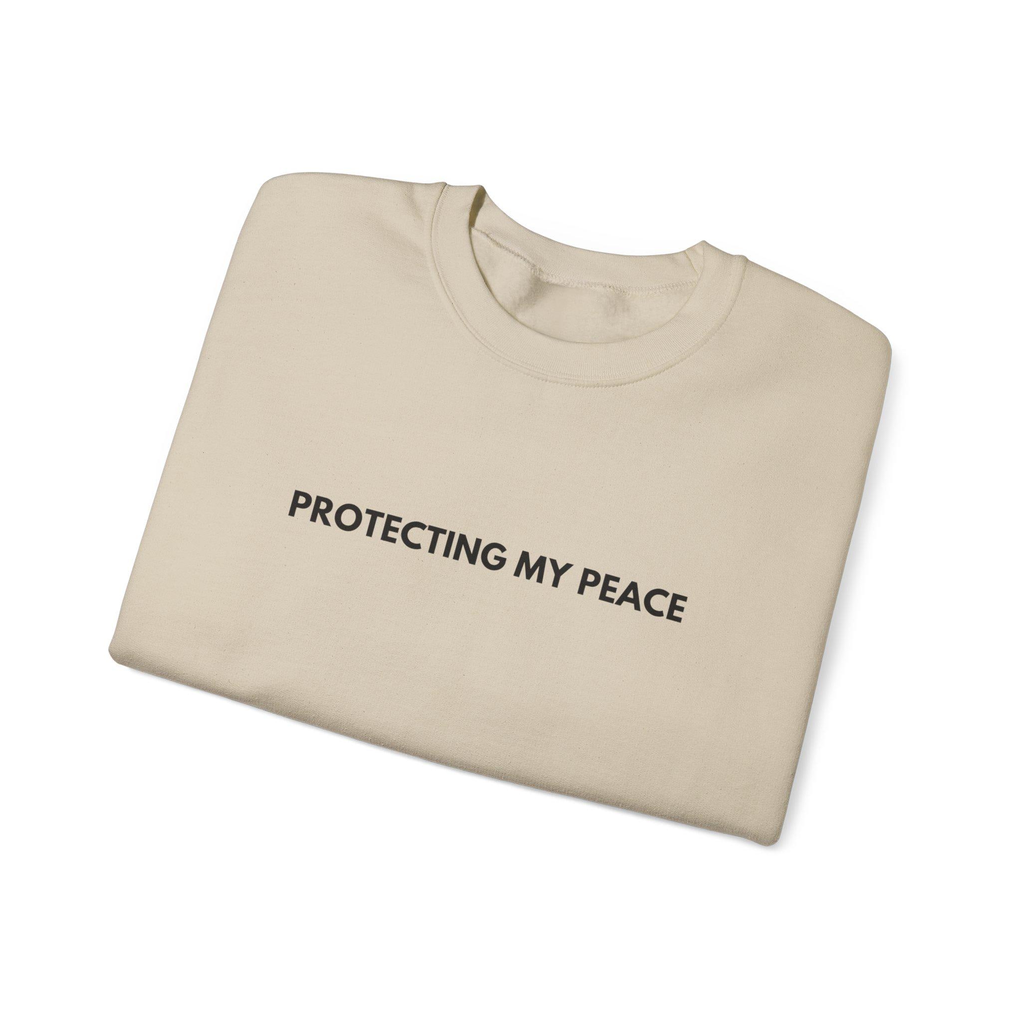A soft, mid-weight crewneck quietly declaring boundary and calm. This sweatshirt wears like a trusted layer—cozy fleece on the inside, smooth face on the outside—with a small, understated “PROTECTING MY PEACE” embroidered across the chest. It sits with a classic cut that drapes comfortably and keeps movement easy, while reinforced stitching at stress points means it’ll stay a wardrobe staple through many washes. Subtle, clean, and intentionally minimal, it’s for people who want their clothing to speak in a calm voice.