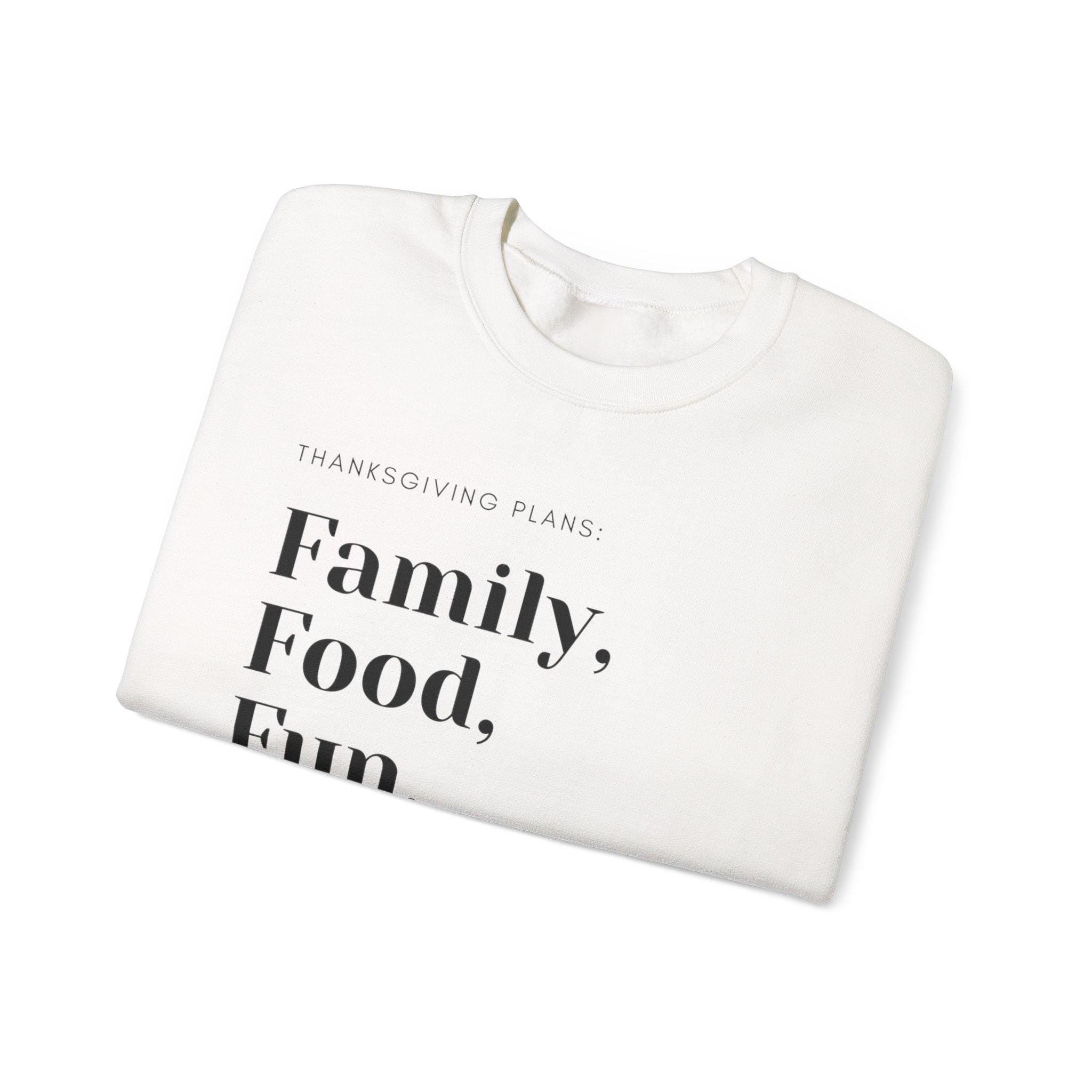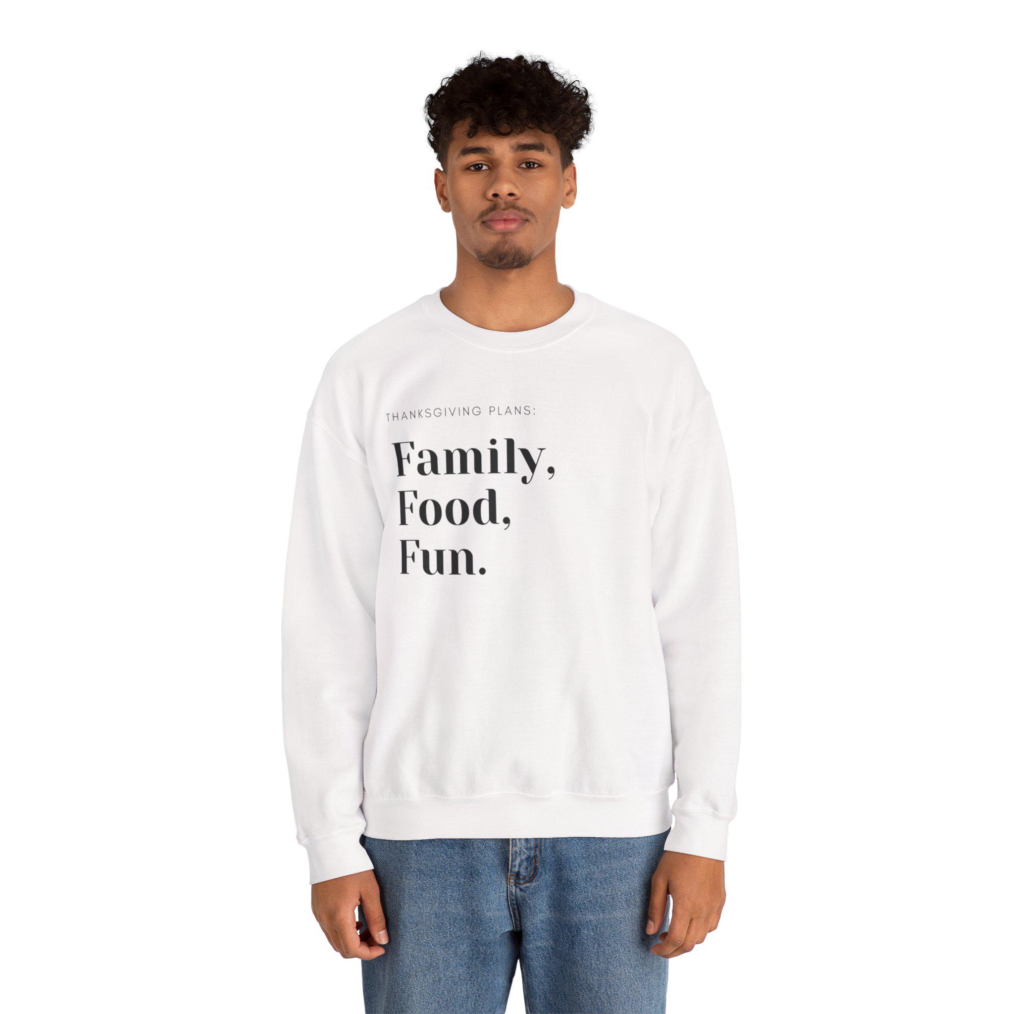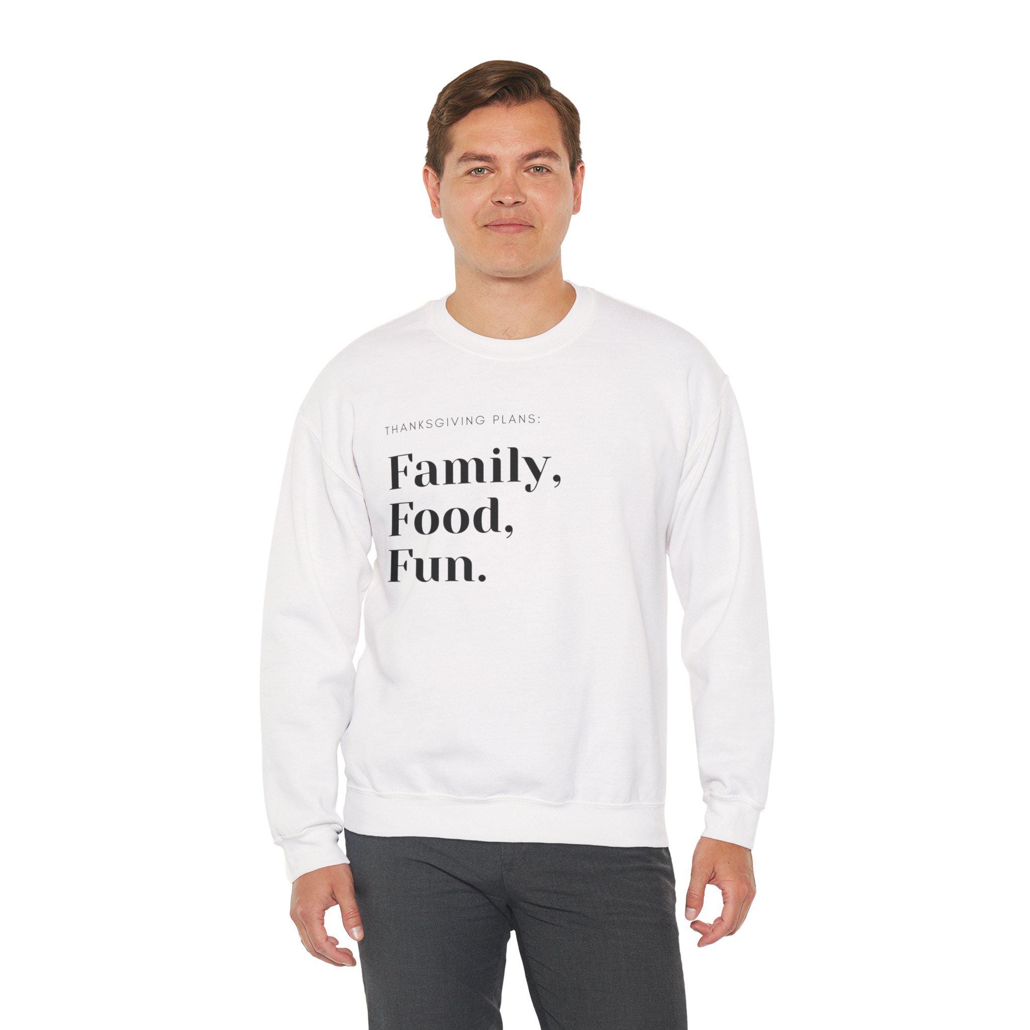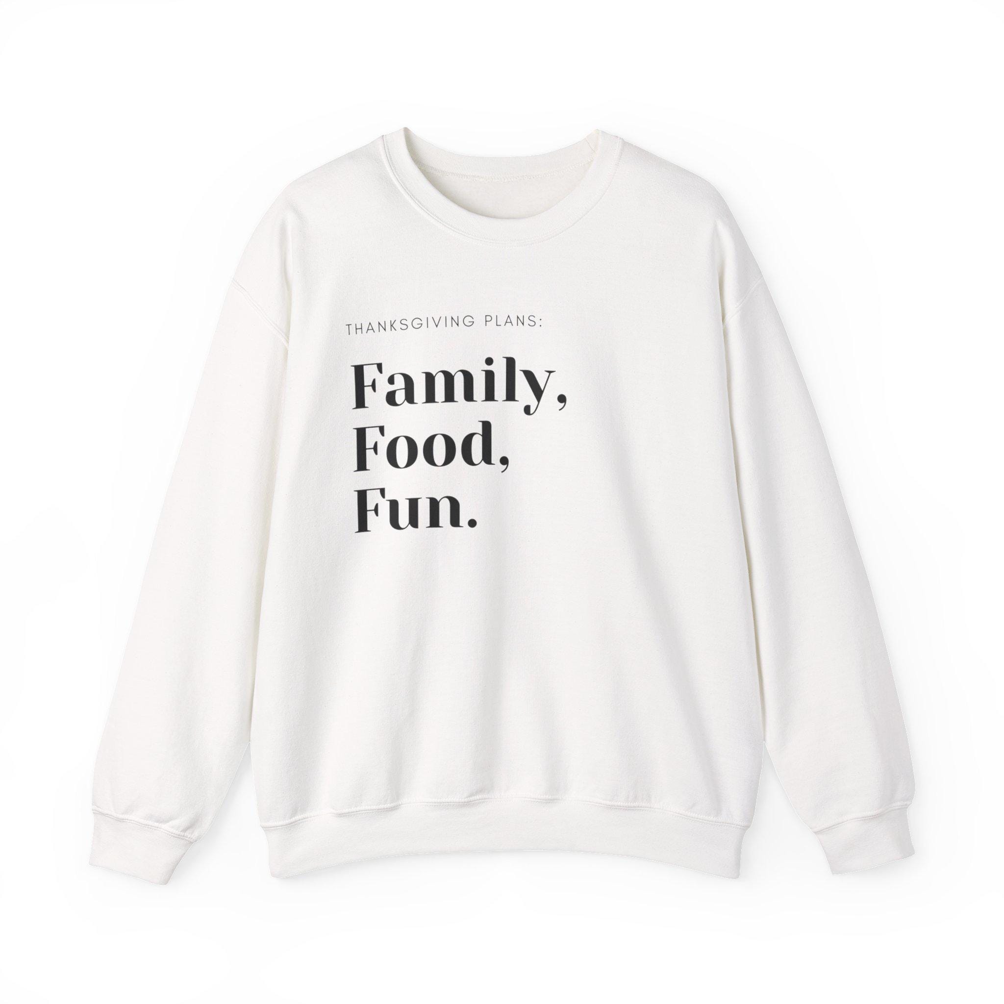 Soft, understated, and quietly nostalgic — this crewneck wraps you in the comfort of slow mornings and long conversation. The clean, minimal typography reads “Family, Food, Fun.” in a soft contrast against the warm white fabric, a gentle reminder to savor everyday moments. The midweight 50/50 cotton-poly blend feels substantial without being bulky; ribbed collar and cuffs hold their shape, while double-needle stitching keeps this sweatshirt going through repeated wears. Wear it to casual family dinners, weekend markets, or layered under a coat for holiday visits. It sits comfortably in any wardrobe that values ease, warmth, and subtle, meaningful design.