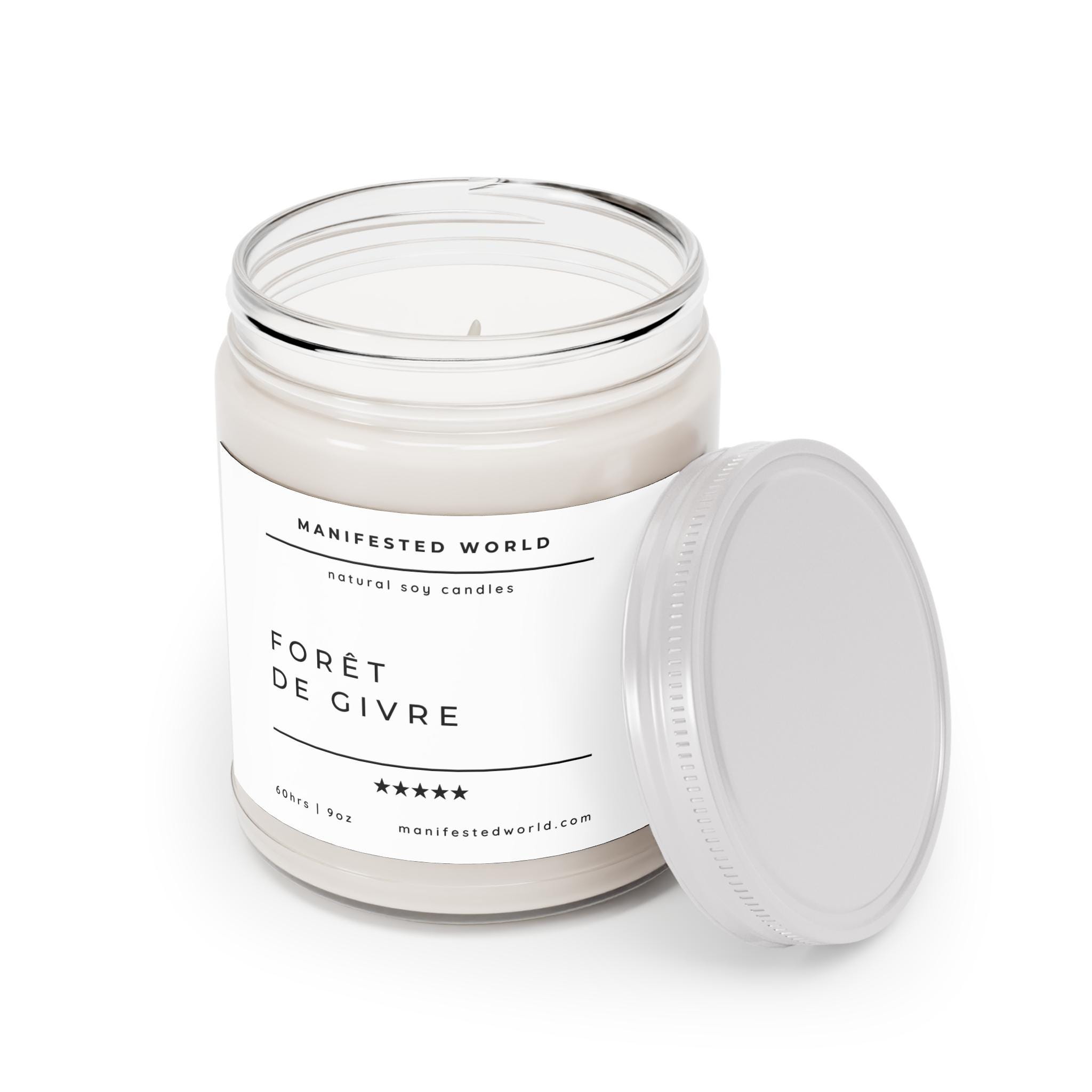Close your eyes and step into a winter forest. This 9 oz soy candle, Forêt de Givre, opens with crisp balsam and bright eucalyptus, then settles into a clean cedarwood base—like walking through fir and cedar branches dusted with frost. It brightens quiet evenings after long days outdoors and brings a cool, woodsy clarity to small moments at home. Light it while wrapping gifts, reading by a window during the solstice, or settling into a slow Sunday; the scent feels fresh rather than sweet, clearing the air and the mind. The clear glass vessel and white lid keep the look simple and calm on a shelf or mantle, and once the wax is gone the jar cleans easily to hold matches, pens, or a sprig of greenery.