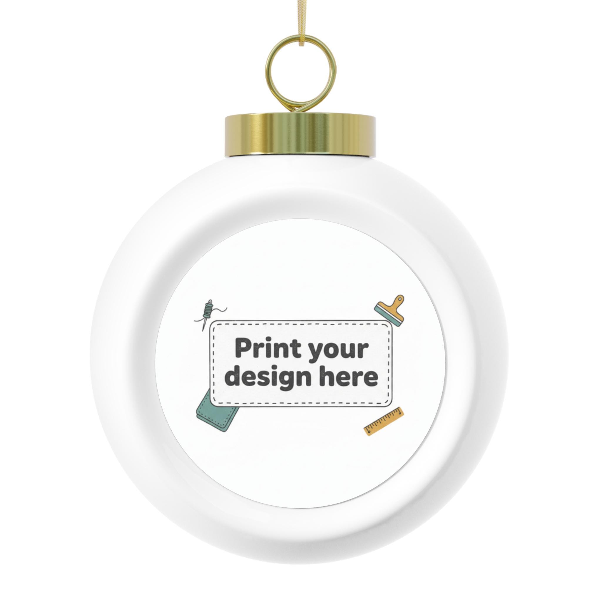 Handmade-feel ceramic ornament with a glossy white surface and a custom aluminum insert for your design. This vintage-inspired ball hangs from a gold ribbon and carries bright, crisp printed colors that bring seasonal artwork to life. The back features a subtle tree/bell motif, giving a layered, nostalgic look whether it sits on a branch or is displayed as a keepsake. Lightweight yet sturdy, it slips easily onto a bough or into a gift box and becomes part of holiday traditions — a small, thoughtful accent that holds a memory or message for years to come.