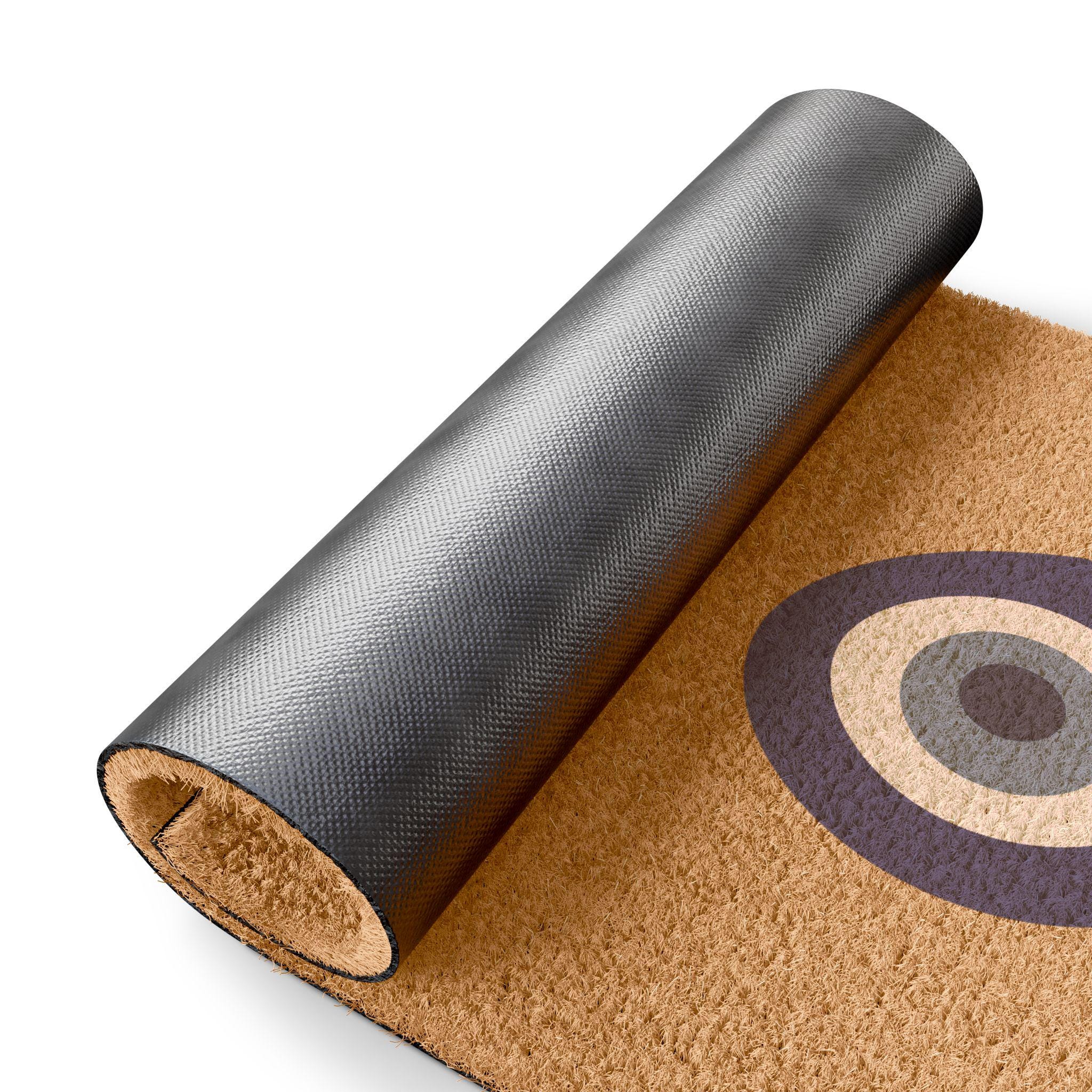 Bring quiet charm to your doorstep with this handcrafted coir doormat. Dense grade-A coconut fibers scrape shoes clean while the weathered concentric-ring motif adds a calm, contemporary note to entryways. The textured surface holds up to muddy boots and rainy days, while the sturdy black vinyl backing keeps the mat anchored against slips and wind. Low-maintenance and built for outdoor use, it settles into everyday comings and goings — greeting guests and grounding your space with subtle, lived-in style.