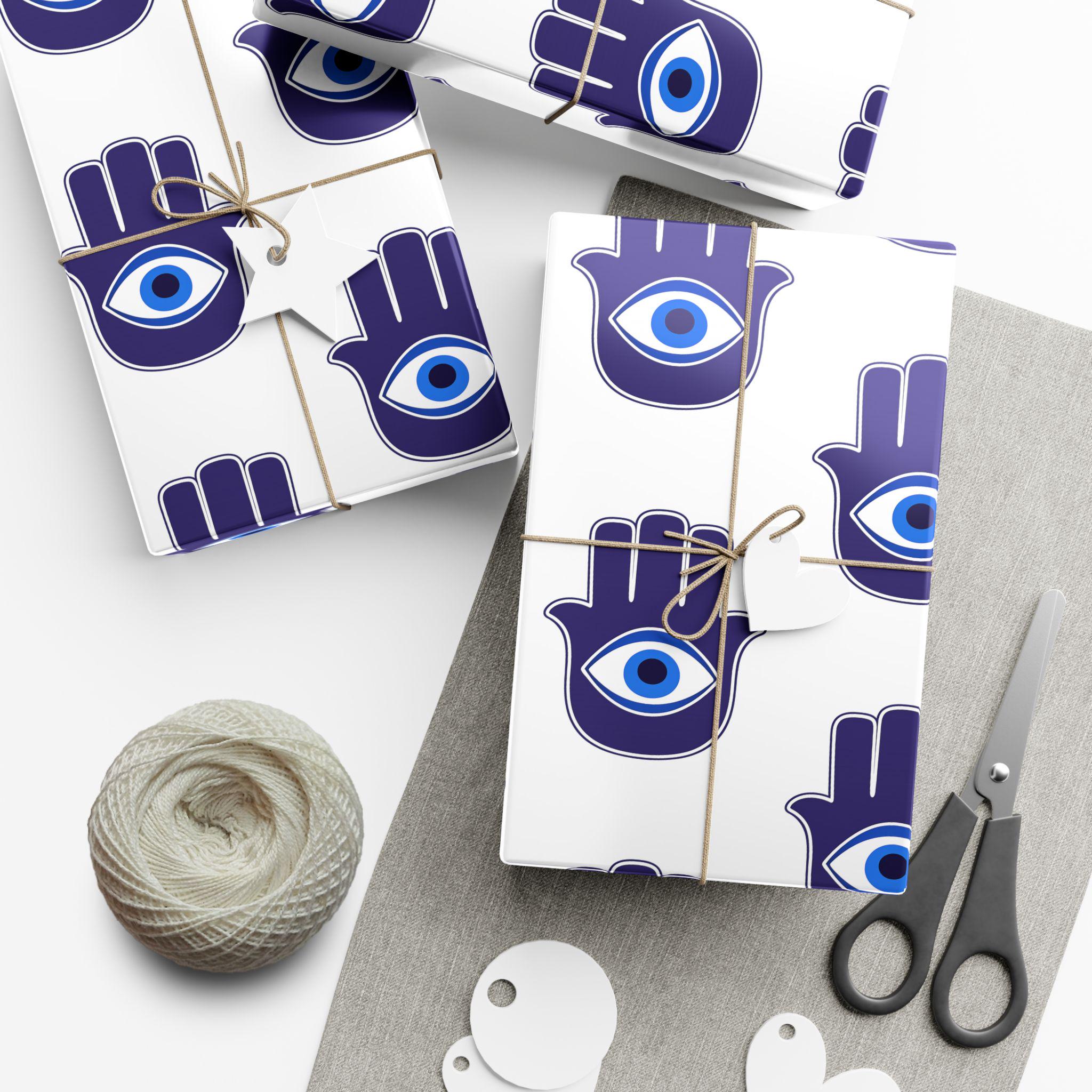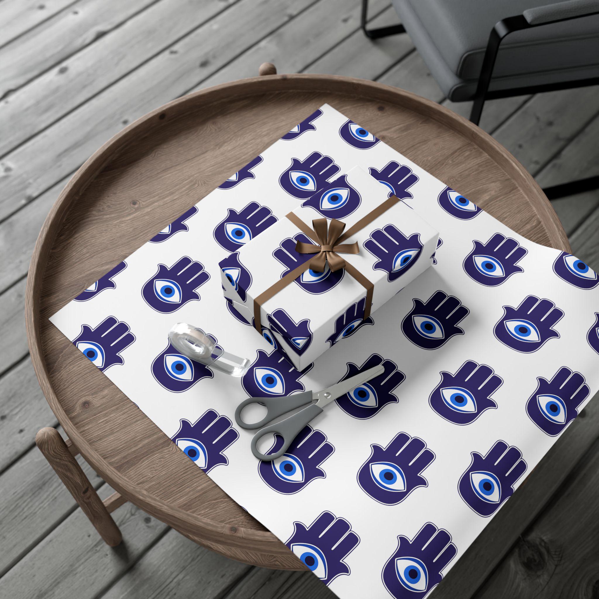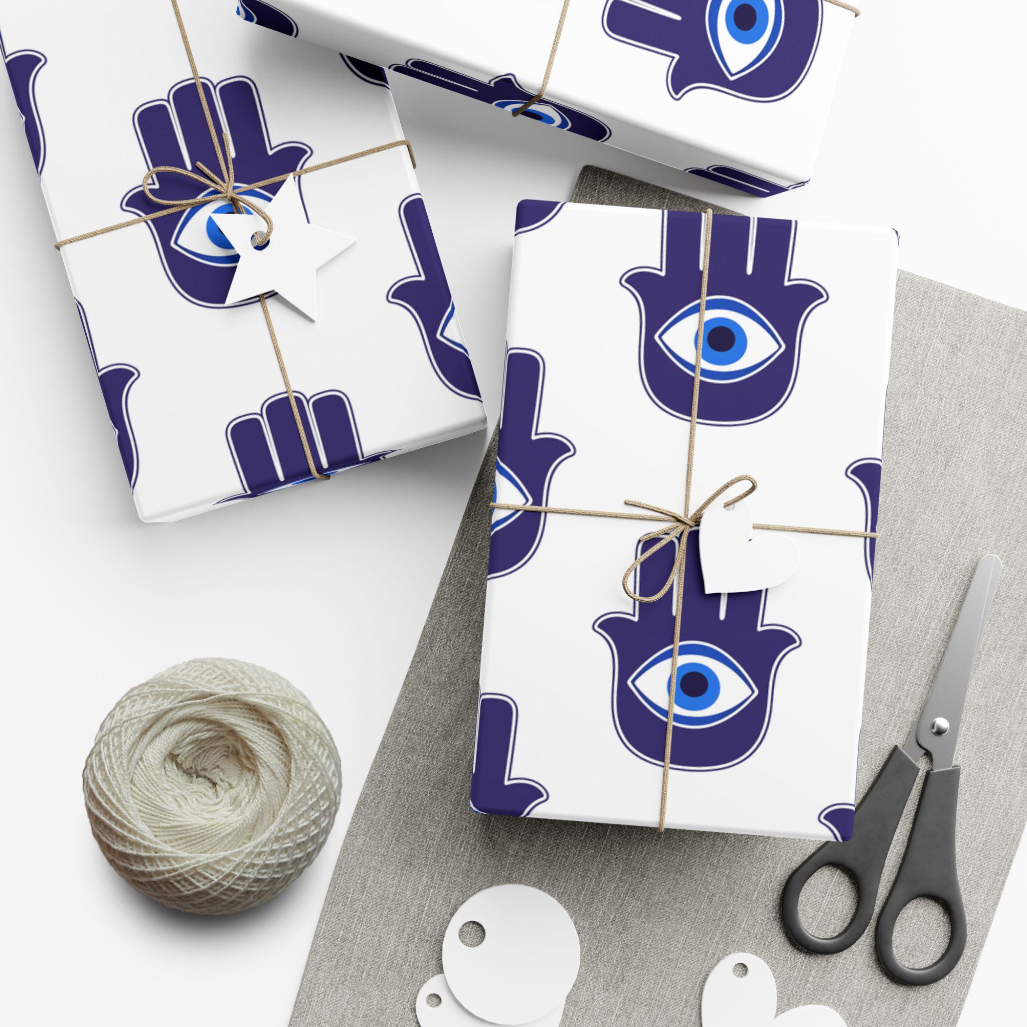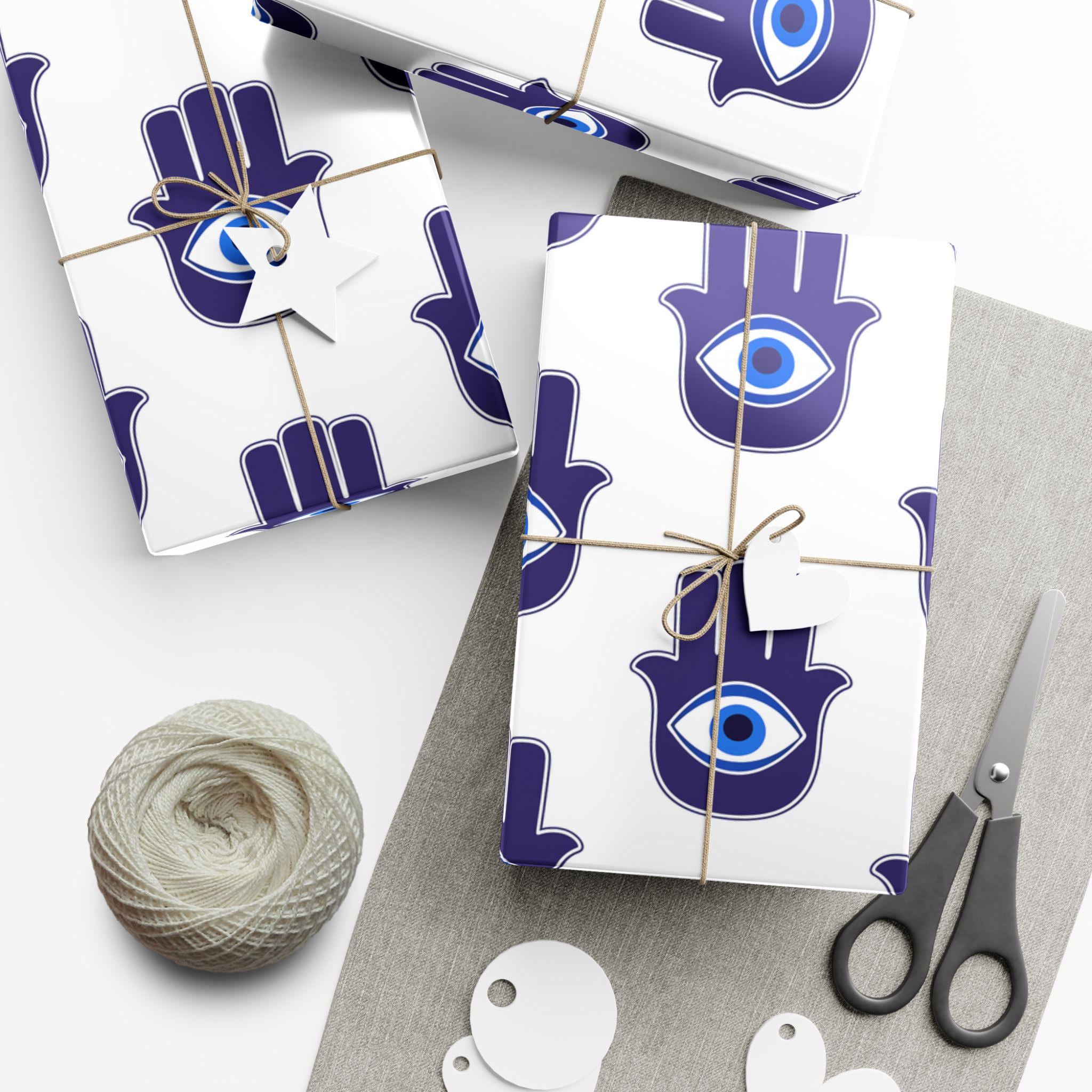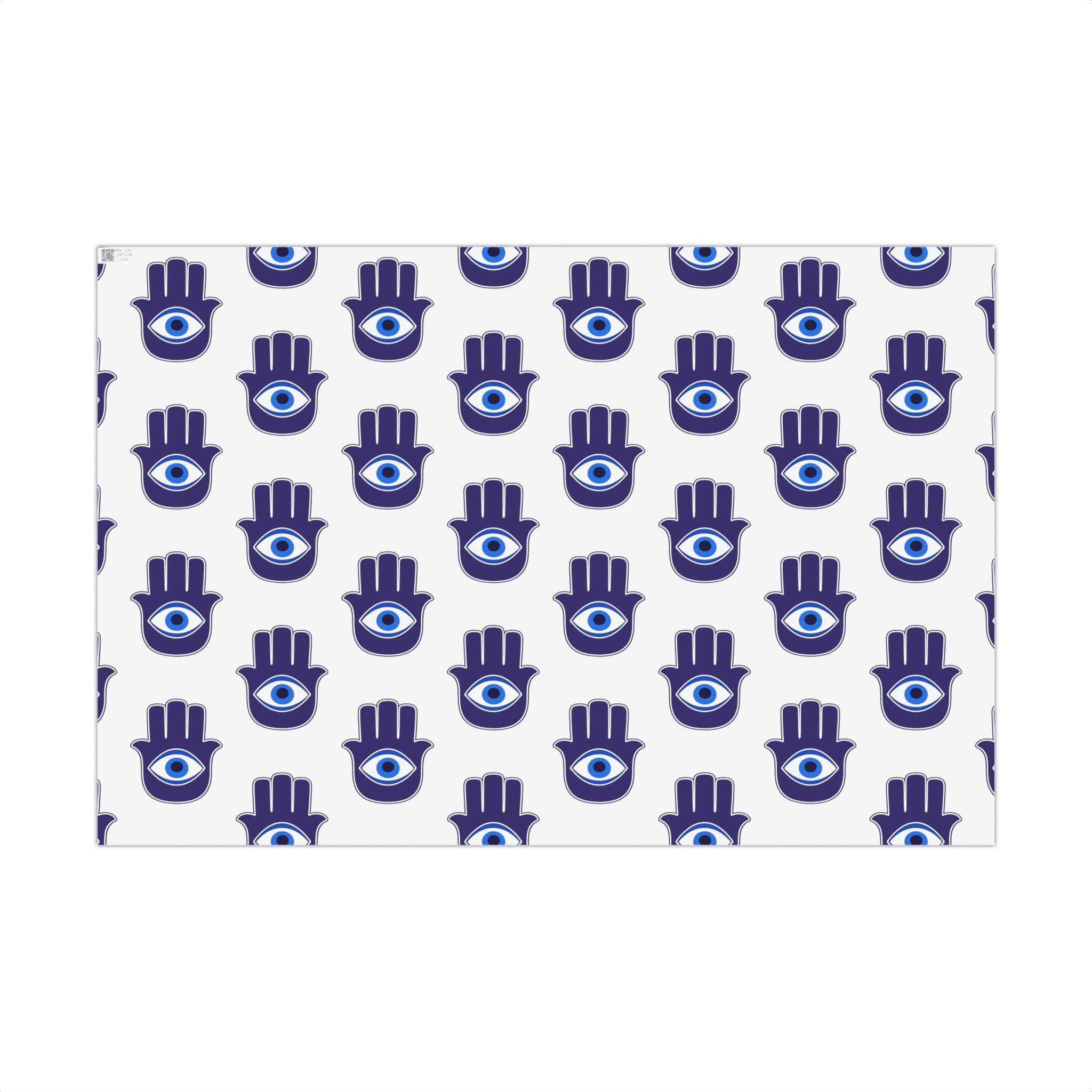 Hand-printed gift wrap that feels thoughtful the moment you touch it. Deep indigo Hamsa hands with a central eye repeat across crisp white paper, lending each parcel an aura of protection and calm. Choose satin for a subtle sheen that catches light, or matte for a refined, museum-like finish. The sheets are durable and flexible—resistant to scratches, water, and cracking when folded—so bows stay smooth and corners stay crisp. Printed with water-based, Greenguard-certified inks and fully recyclable, this wrap brings color and meaning without the waste.