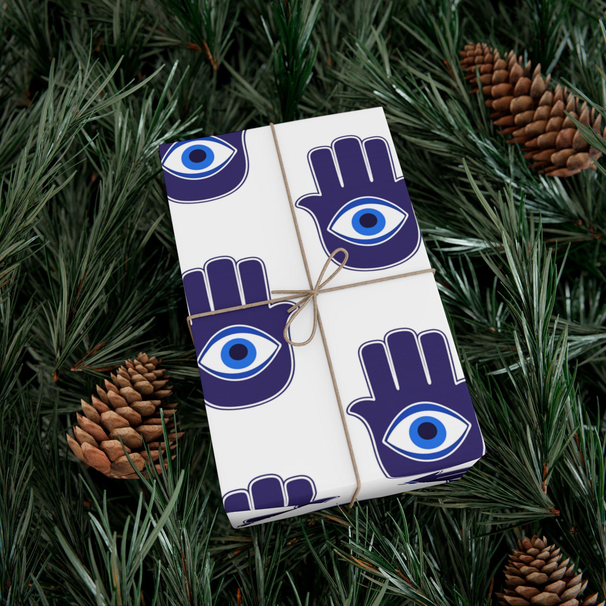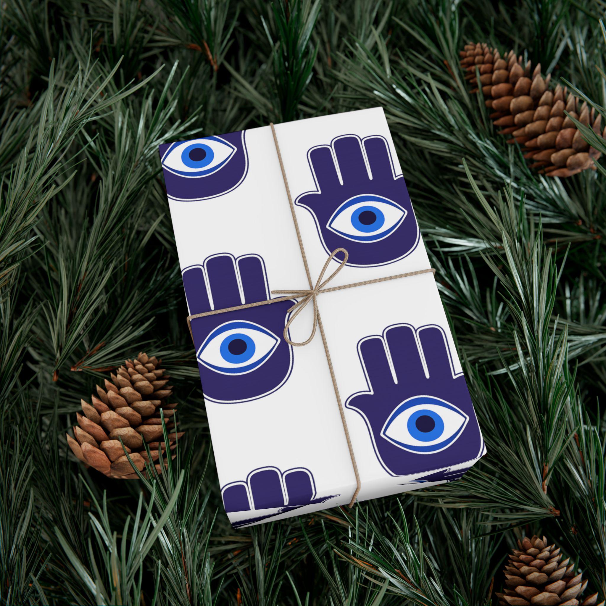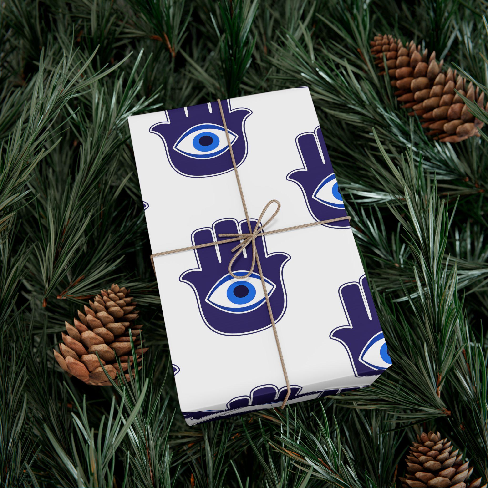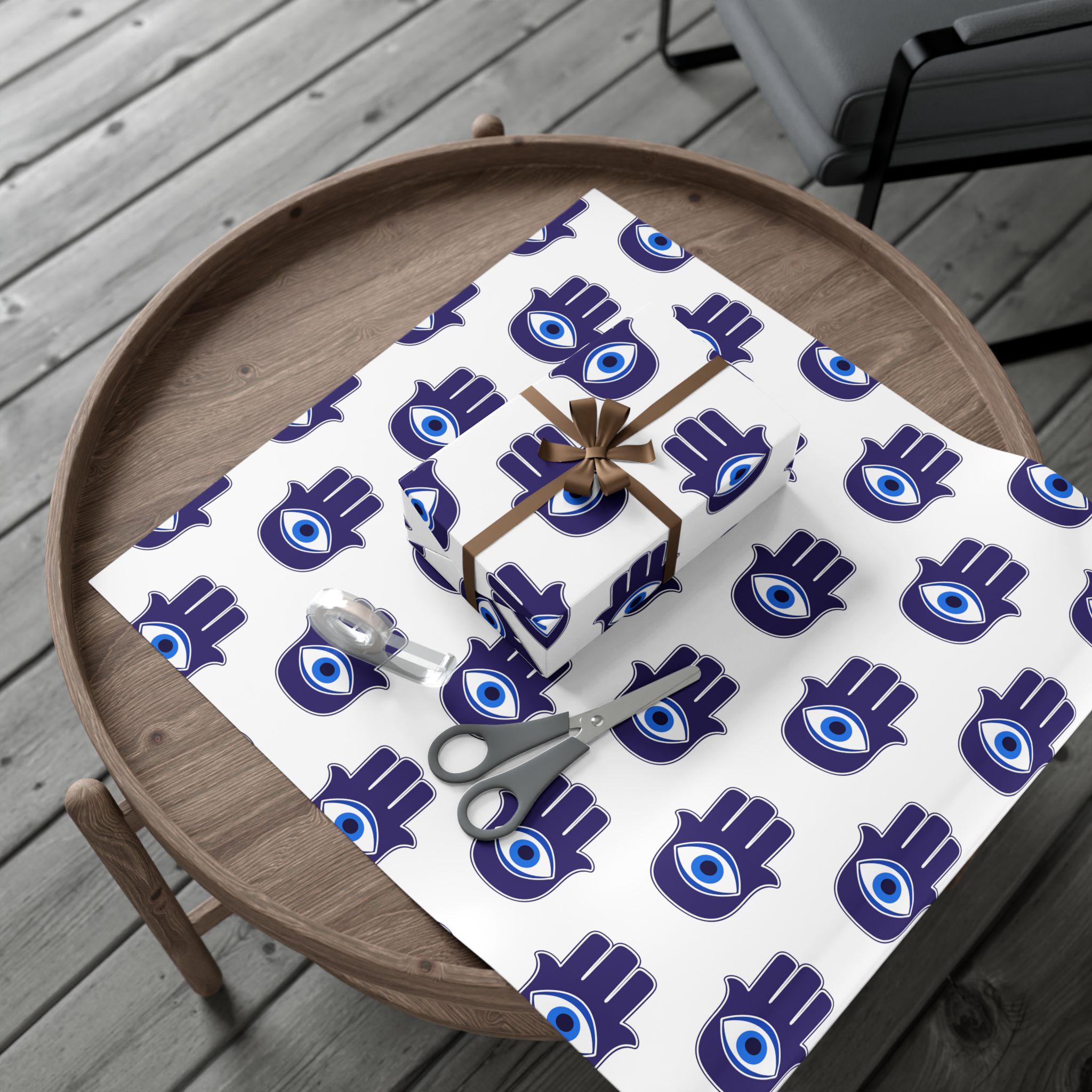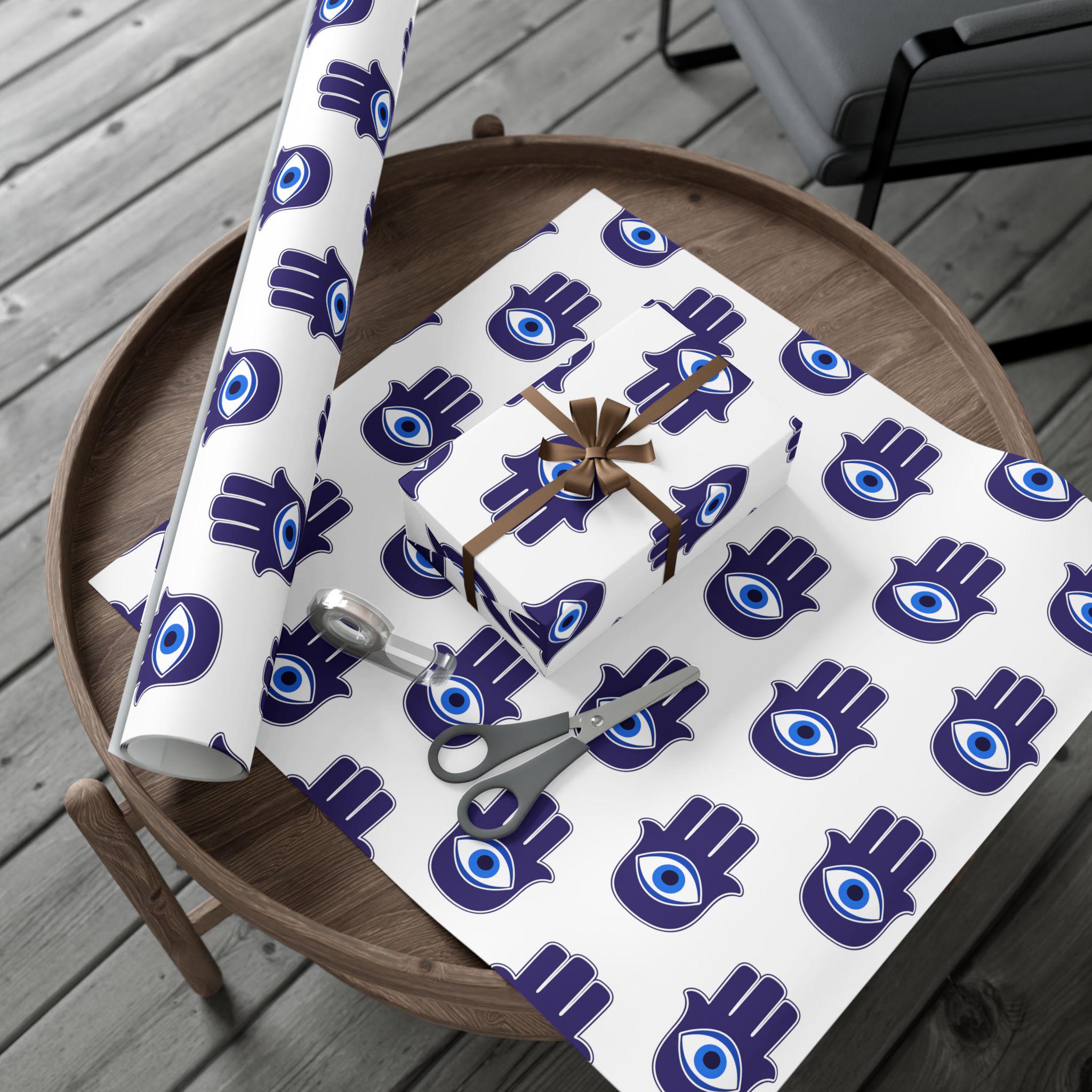 Hand-printed gift wrap that feels thoughtful the moment you touch it. Deep indigo Hamsa hands with a central eye repeat across crisp white paper, lending each parcel an aura of protection and calm. Choose satin for a subtle sheen that catches light, or matte for a refined, museum-like finish. The sheets are durable and flexible—resistant to scratches, water, and cracking when folded—so bows stay smooth and corners stay crisp. Printed with water-based, Greenguard-certified inks and fully recyclable, this wrap brings color and meaning without the waste.